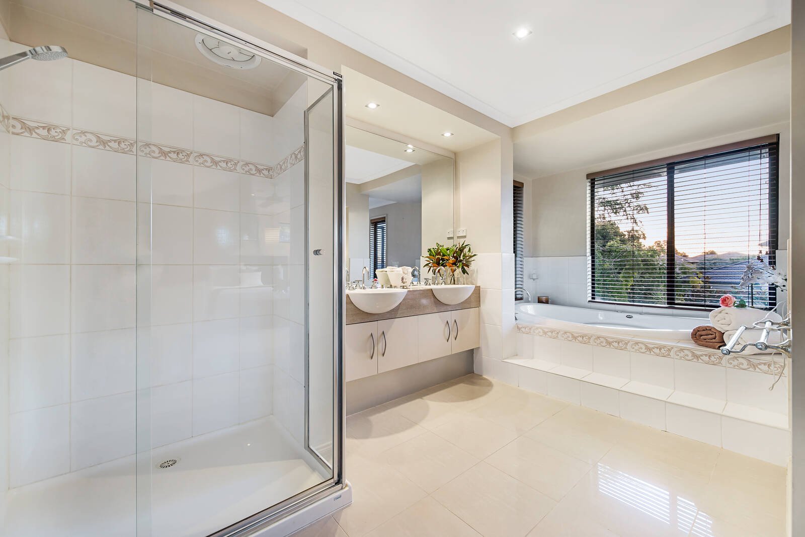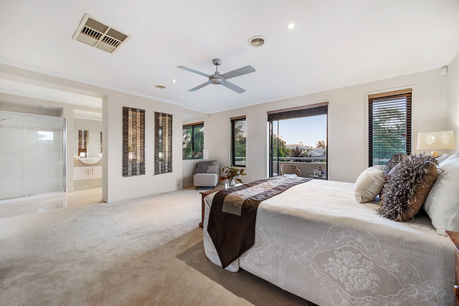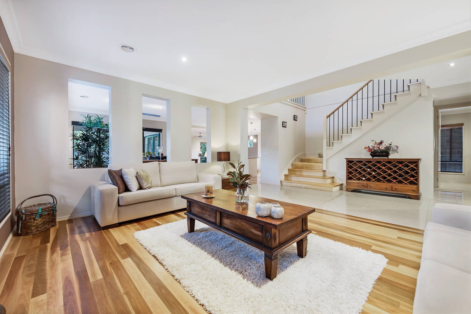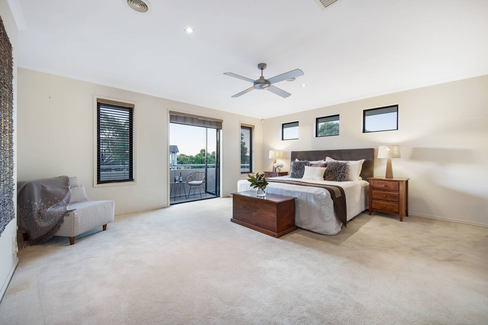 Wrapped in easy care gardens that include alfresco decking tailor-made for easy outdoor entertaining, the accommodation includes an open plan living zone that embraces a well-equipped stone kitchen. Featuring a waterfall breakfast bar and large walk-in pantry, hosts will love the space and function on offer. There are an additional living and four bedrooms peacefully placed upstairs including the main spacious ensuite master with walk-in robes that capitalises on the leafy outlooks – the remaining bedrooms offers built-in storage and share the modern family bathroom.