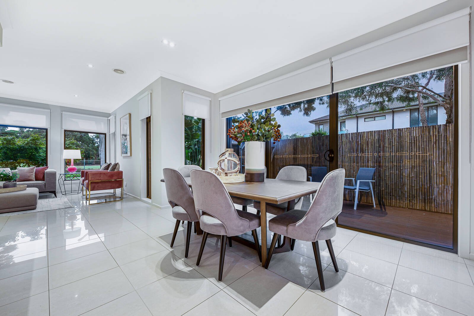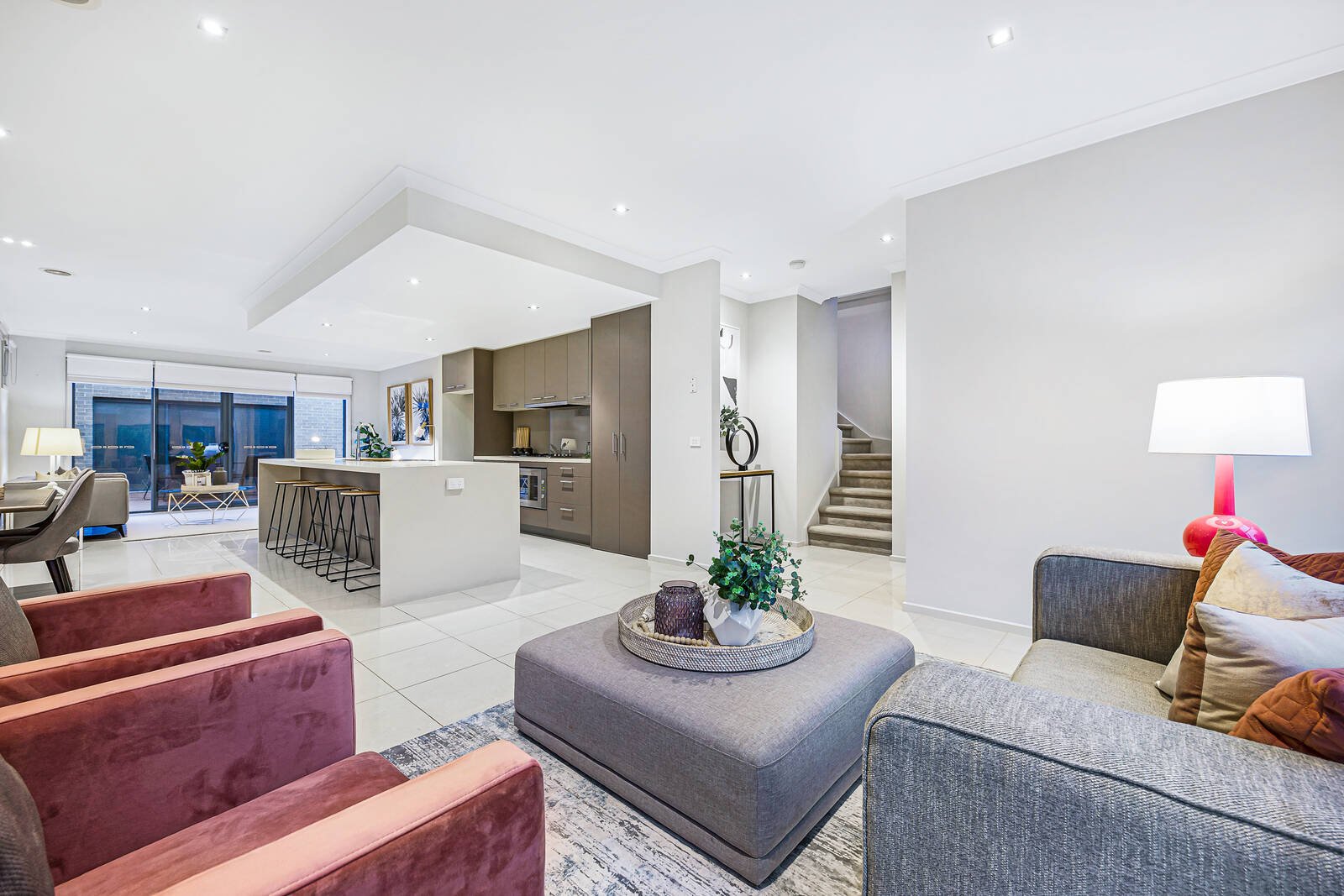 Wrapped in easy care gardens that include alfresco decking tailor-made for easy outdoor entertaining, the accommodation includes an open plan living zone that embraces a well-equipped stone kitchen. Featuring a waterfall breakfast bar and large walk-in pantry, hosts will love the space and function on offer. Each of the four bedrooms are peacefully placed upstairs including a spacious ensuite master with walk-in robes that capitalises on the leafy outlooks – the remaining bedrooms offers built-in storage and share the modern family bathroom.