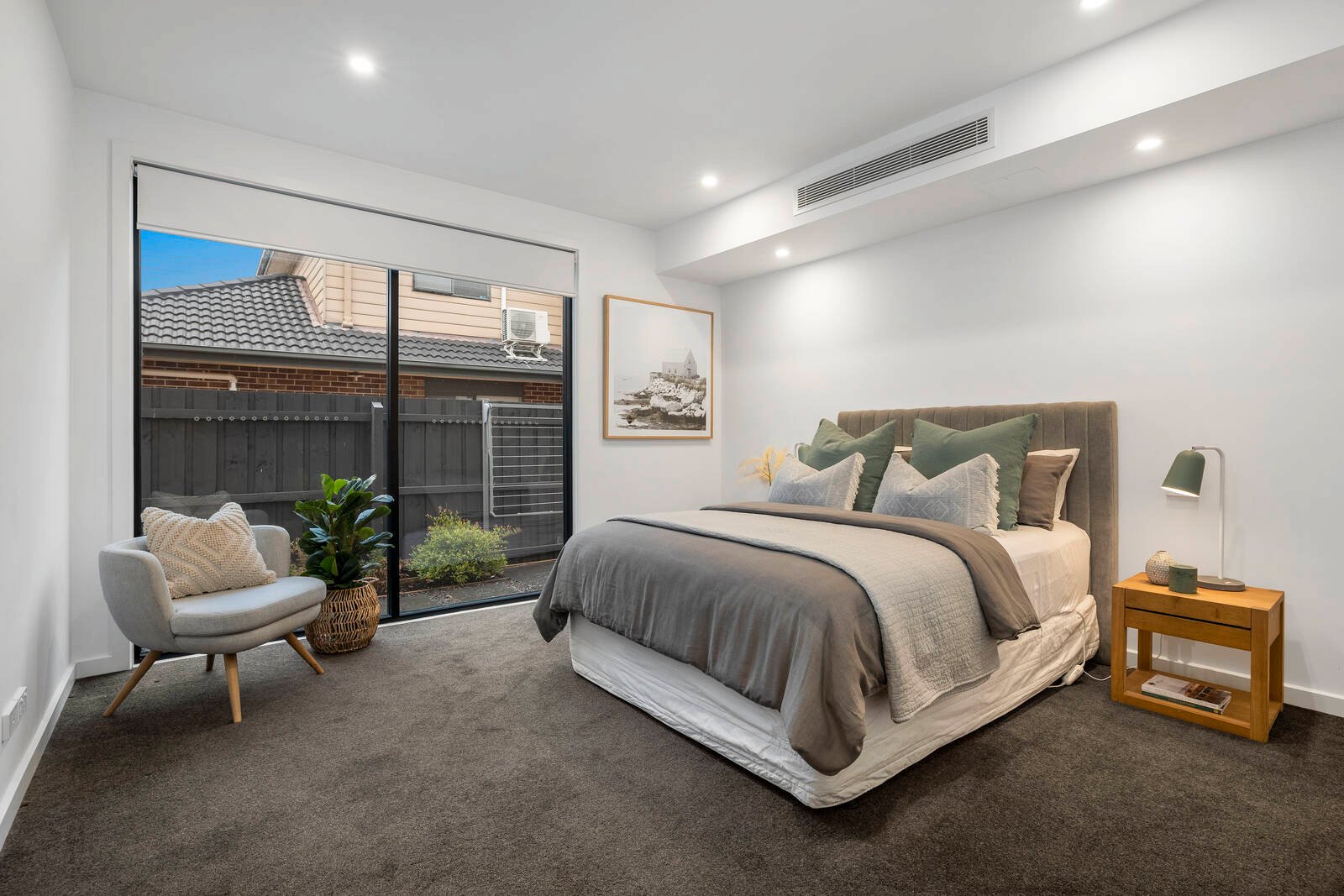 Finished in warm, fashionable tones, the designer kitchen showcases sleek grey stone benchtops and premium Miele appliances (including the integrated dishwasher), while the adjacent open plan living/dining zone will appeal to those that love to entertain. From here, head outside to the private courtyard complete with alfresco dining area for easy summer barbeques with friends.