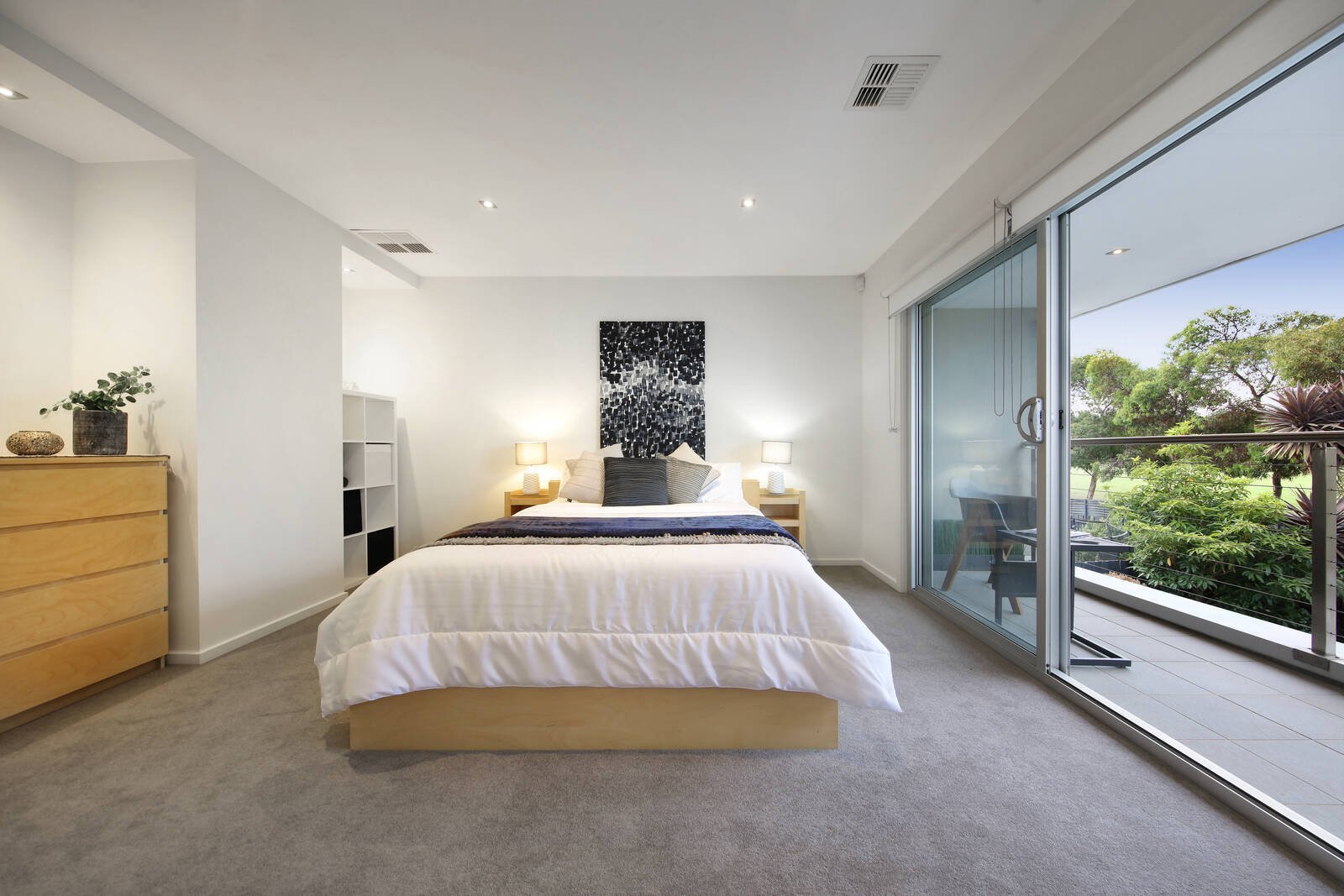 The luxurious main bedroom is fitted with a twin ensuite, WIR and balcony overlooking parkland, and is accompanied by 3 additional robed bedrooms and deluxe fully-tiled spa bathroom featuring a heated towel rail.