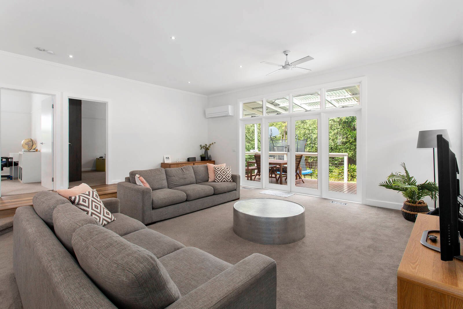 A gas fireplace keeps the tranquil lounge cosy and warm; the adjacent dining room could double as a handy home office and the rear entertaining zone has plenty of space to host loved ones. From here head outside to the undercover deck and child-friendly gardens for endless outdoor enjoyment.
