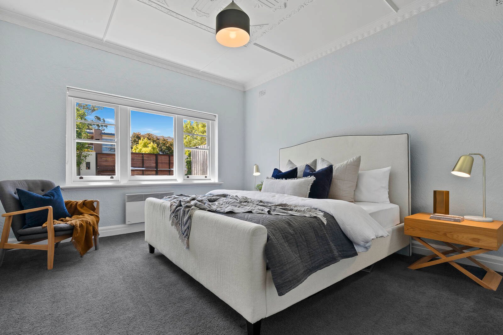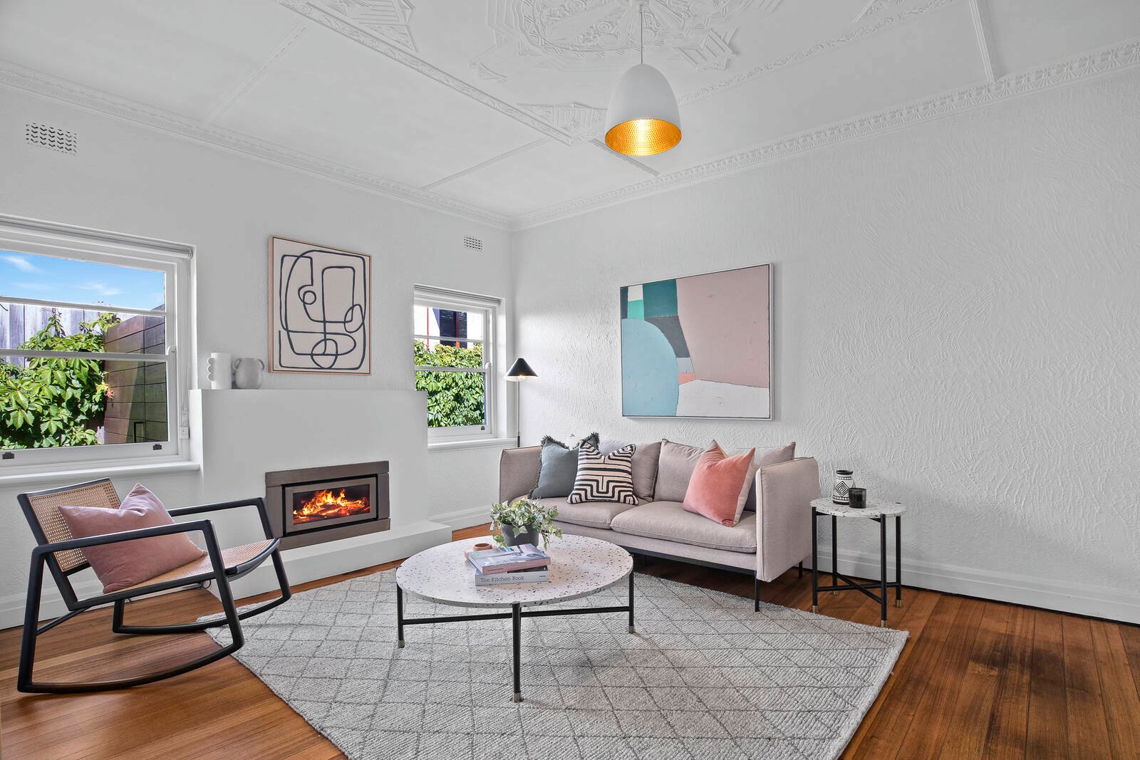 Beyond secure automatic gates, landscaped gardens introduce picture perfect interiors enhanced by Art Deco details and the latest finishes. The original quarters play host to a true parent’s retreat where stunning, decorative ceilings adorn a formal lounge (gas log fireplace) and master bedroom, while a second bedroom offers a wall of custom storage affording the perfect full-size home office or dressing room plus a luxe, fully tiled bathroom.