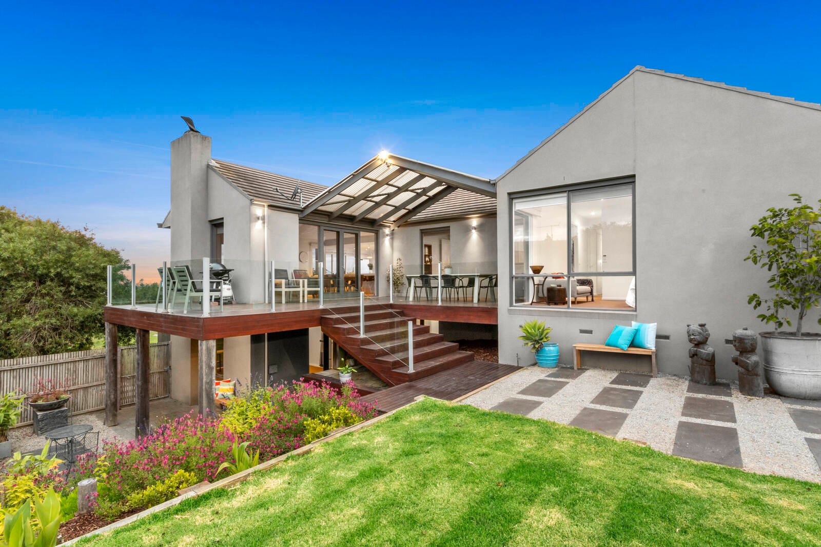 When it comes to outdoor living options, this property leaves you spoilt for choice. Why not enjoy your morning coffee on the front balcony as you watch the sunrise? Or entertain loved ones on the north-facing deck as the kids play on the spacious lawn? The garden terrace entices you to sit back and listen to the birdlife, while the private alfresco gives you a front-row seat to the latest tennis match.