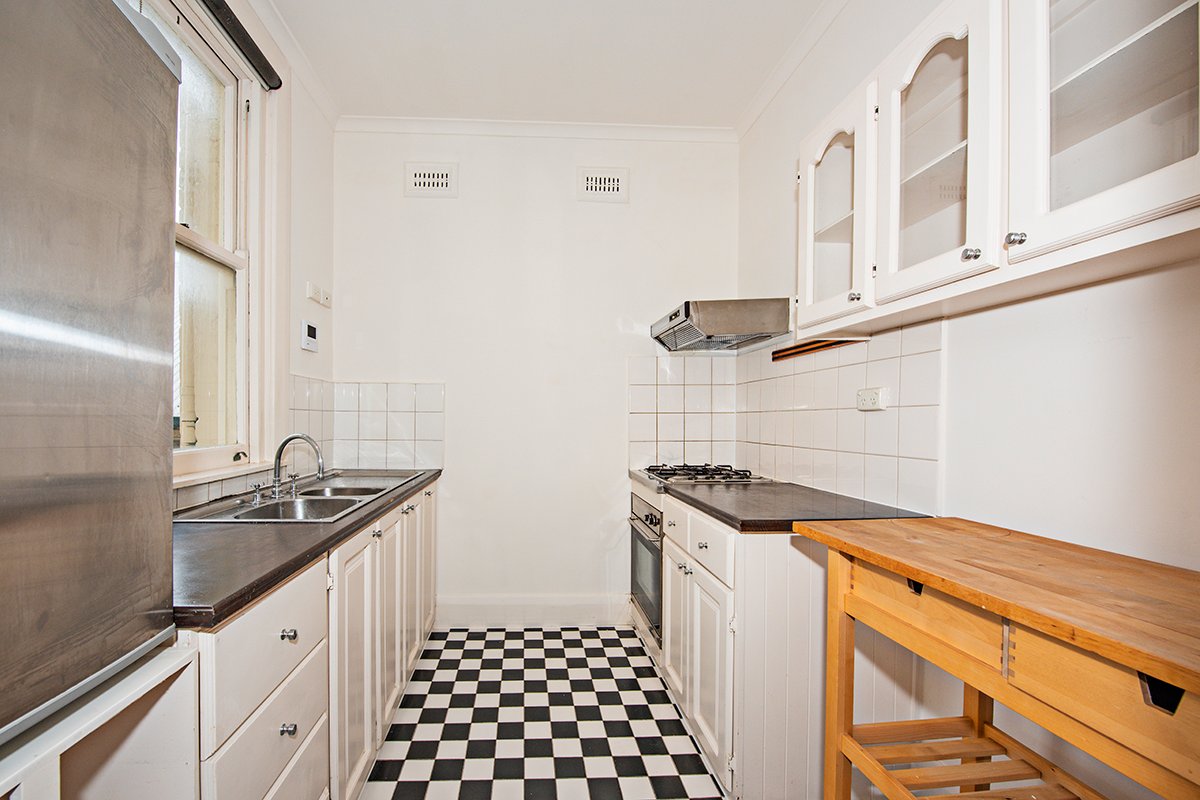 Tucked away in a well maintained block, the apartment's impeccably presented interior comprises one large bedroom with built in robes, a neat central bathroom with a shower over the bath, a lounge/dining area with a window box air conditioner unit, and an updated separate kitchen with stainless steel cooking appliances.