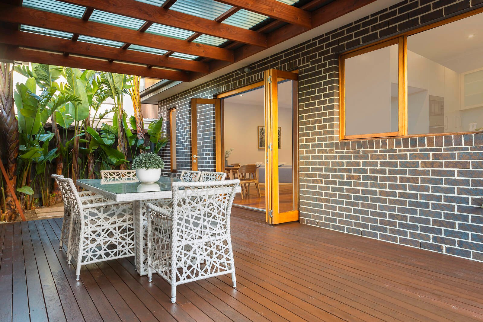 Family accommodation is generous and includes the ground floor master enjoying leafy vistas, walk-in robe and luxe fully-tiled ensuite. A second ground-floor bedroom features built-in robes, walk-in robe and dual access ensuite; while up the timber stairs two additional fitted bedrooms share a sleek twin-vanity family bathroom with separate bath and shower, and separate WC.