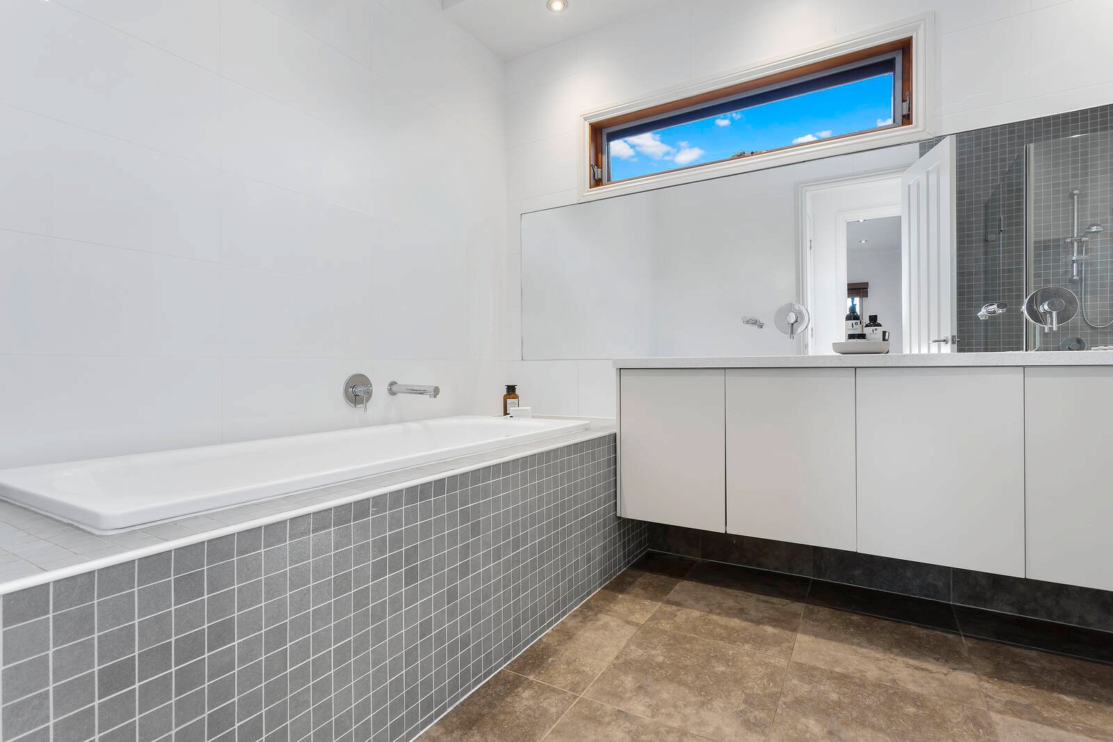 Glossy polished timber lines the entrance hall flowing to a generous refined living and dining domain opening through bi-fold doors to an expansive covered northern deck, perfect for year round enjoyment.