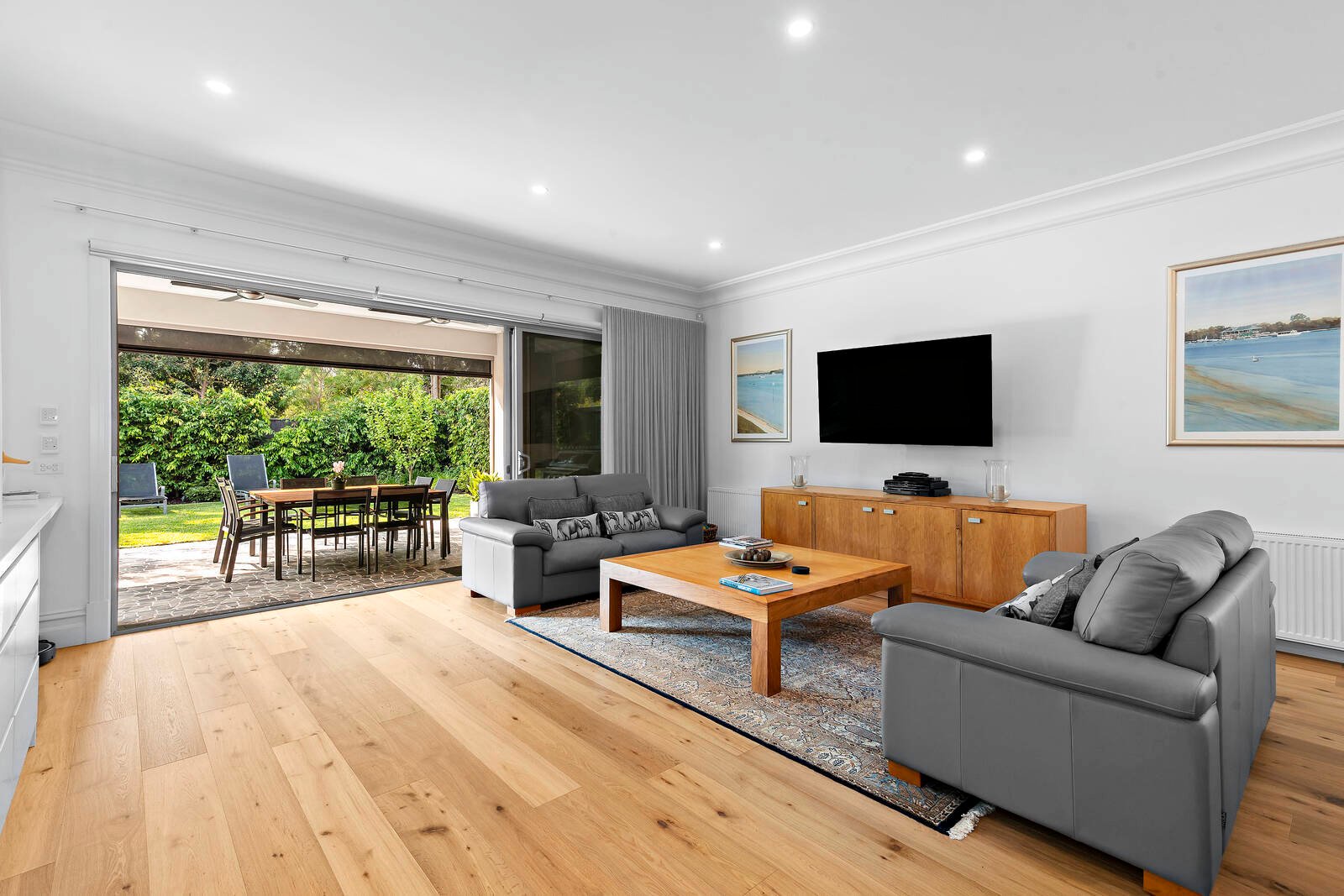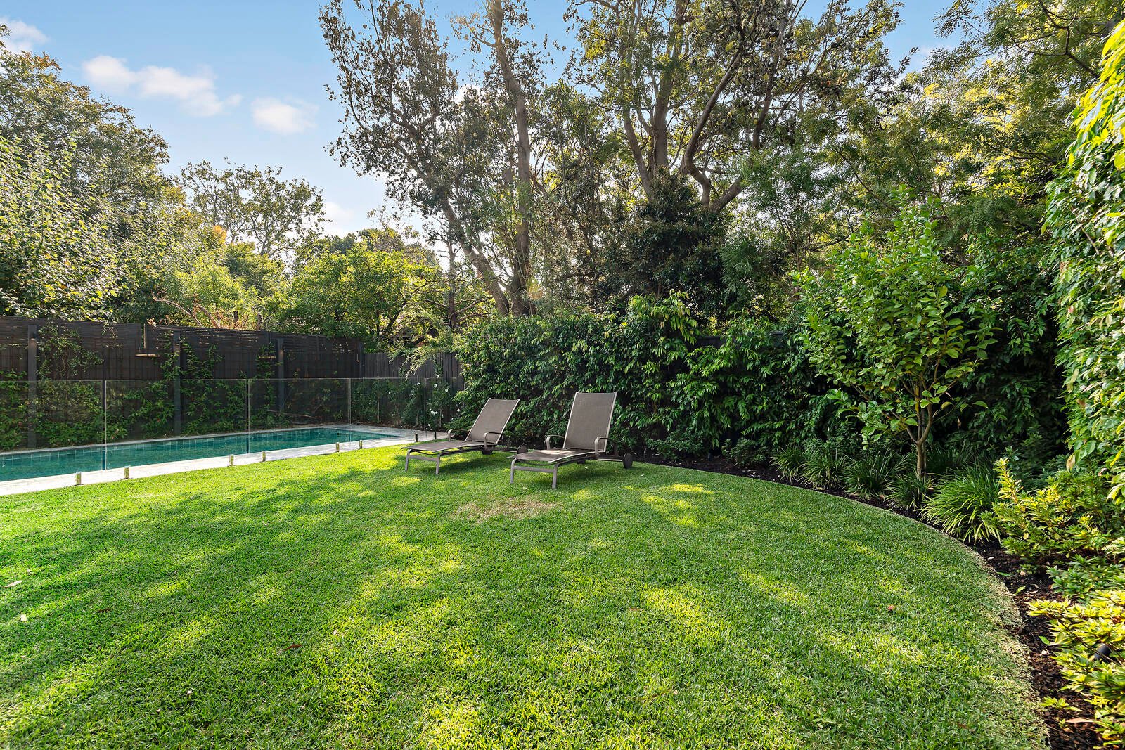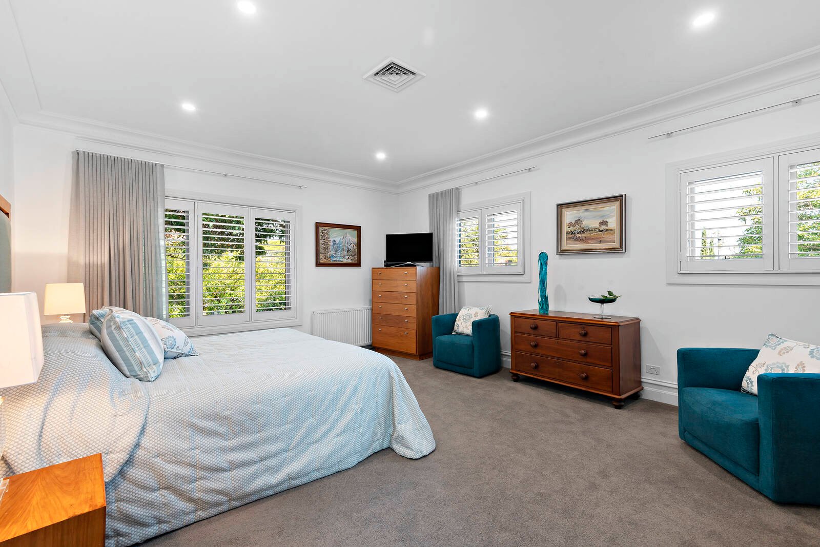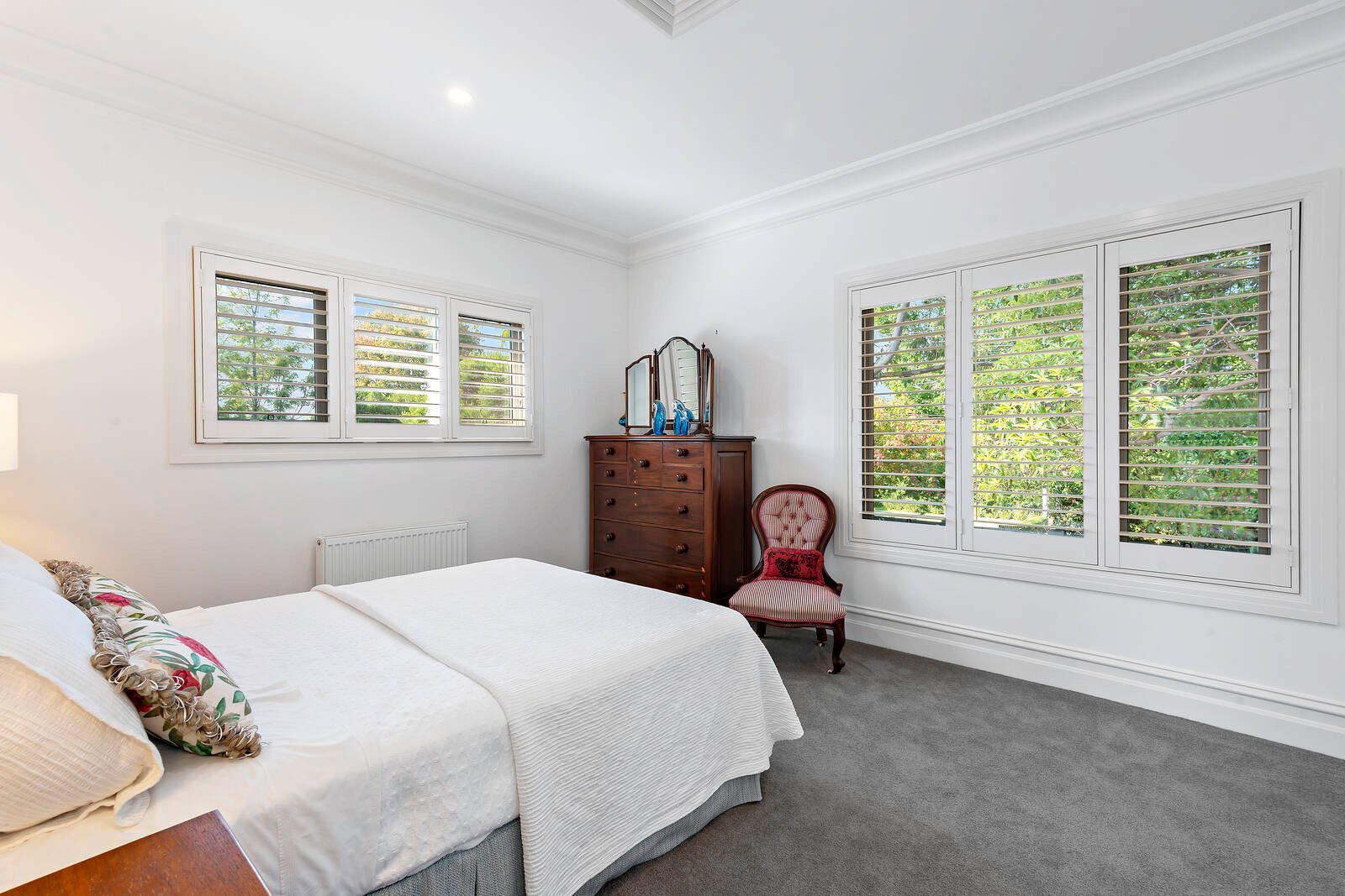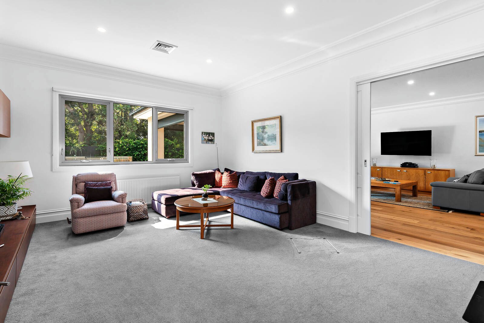 Streaming with northern light, the open-plan living and dining domain, and separate lounge room enjoy lovely aspects across the private rear gardens with solar heated swimming pool. Sliding doors open the living space out to a large covered alfresco entertainment terrace with ceiling fans and overhead heating, and stunning BBQ kitchen set amidst beautiful manicured gardens.