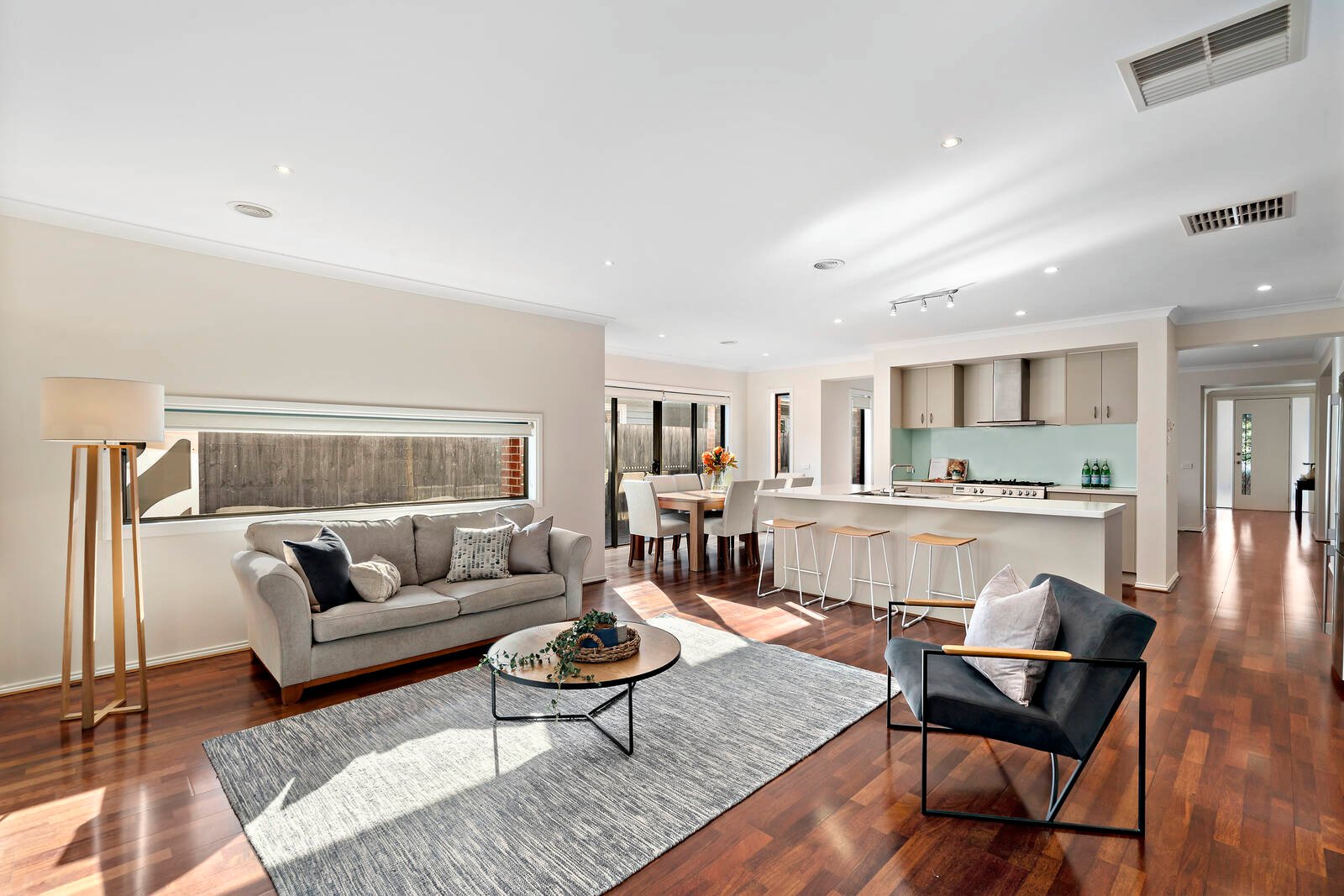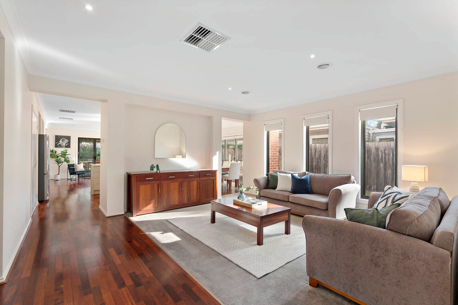 Nestled within a substantial garden allotment of 646m2 approx., and superbly positioned moments from Highland Reserve, this impressively proportioned and impeccably presented residence delivers immediate family appeal with its spacious light-filled interiors, multiple living zones, and gorgeous low-upkeep setting.