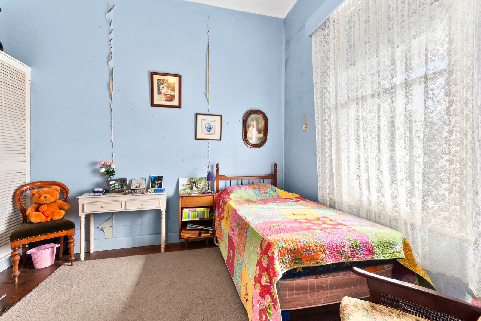 Frozen in time, this original 3 bedroom home is ready to renovate, subdivide or partly bulldoze and rebuild (STCA) and make it your own. With floorboards throughout and wood panelling found in the hallway and living room and a feature wall of wooden shingles surrounding the fireplace in the living room, this home has some interesting features that could be carried through in your renovation. A good sized kitchen which has a walk in pantry, oven and gas stove top and potential to expose the original fireplace. Great size backyard with a large veggie garden and a lawn area surrounded by garden as well as a double car garage which is accessed via the rear lane.