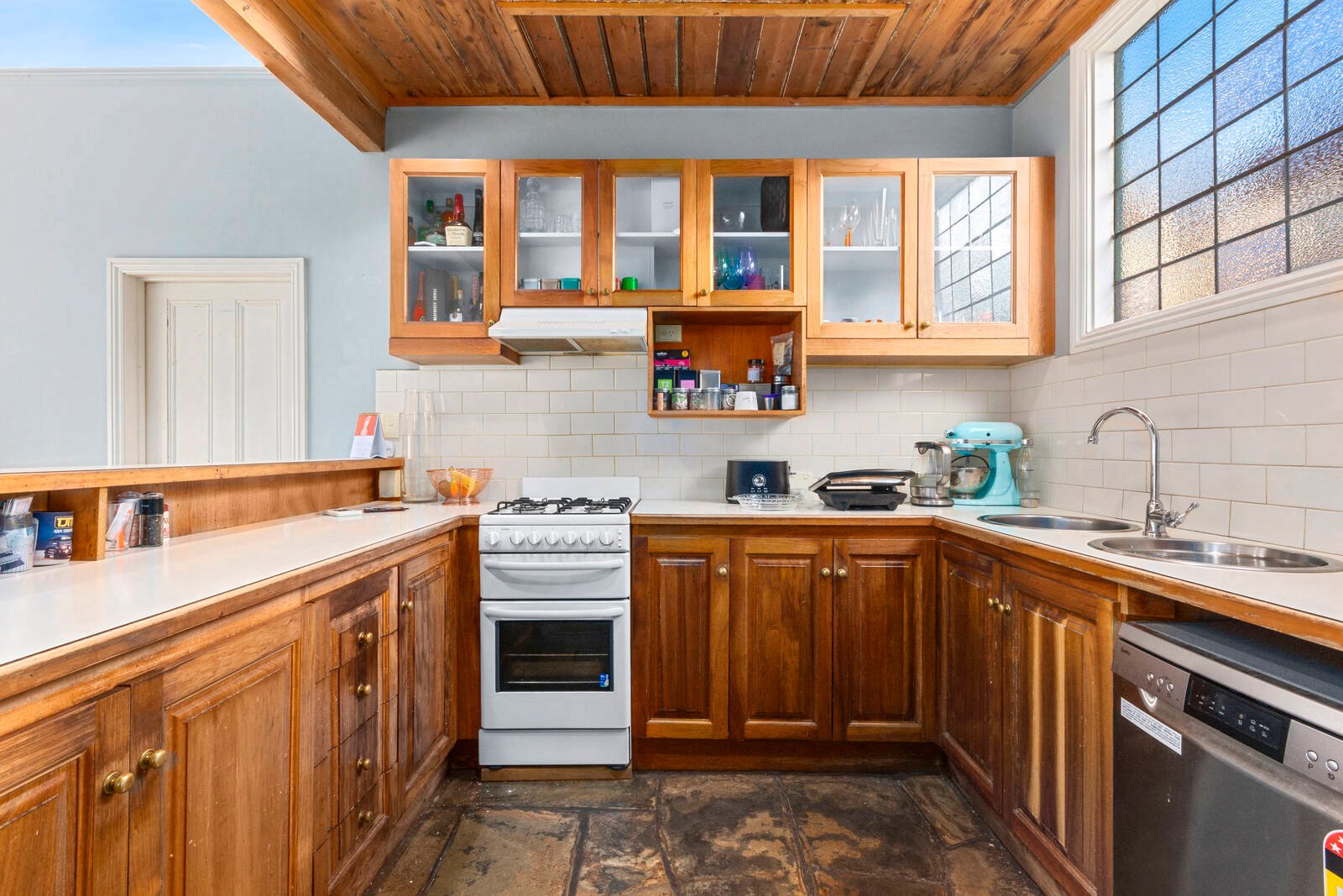 Other features include lead-light windows, timber lined walls and cathedral ceilings, original fireplaces, split system air conditioning and heating units.