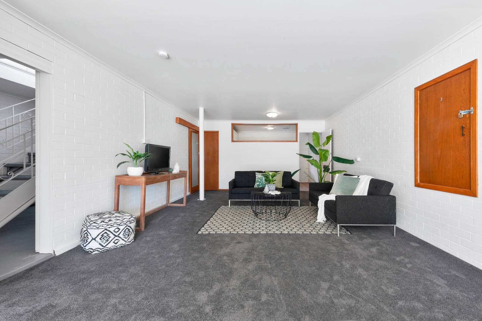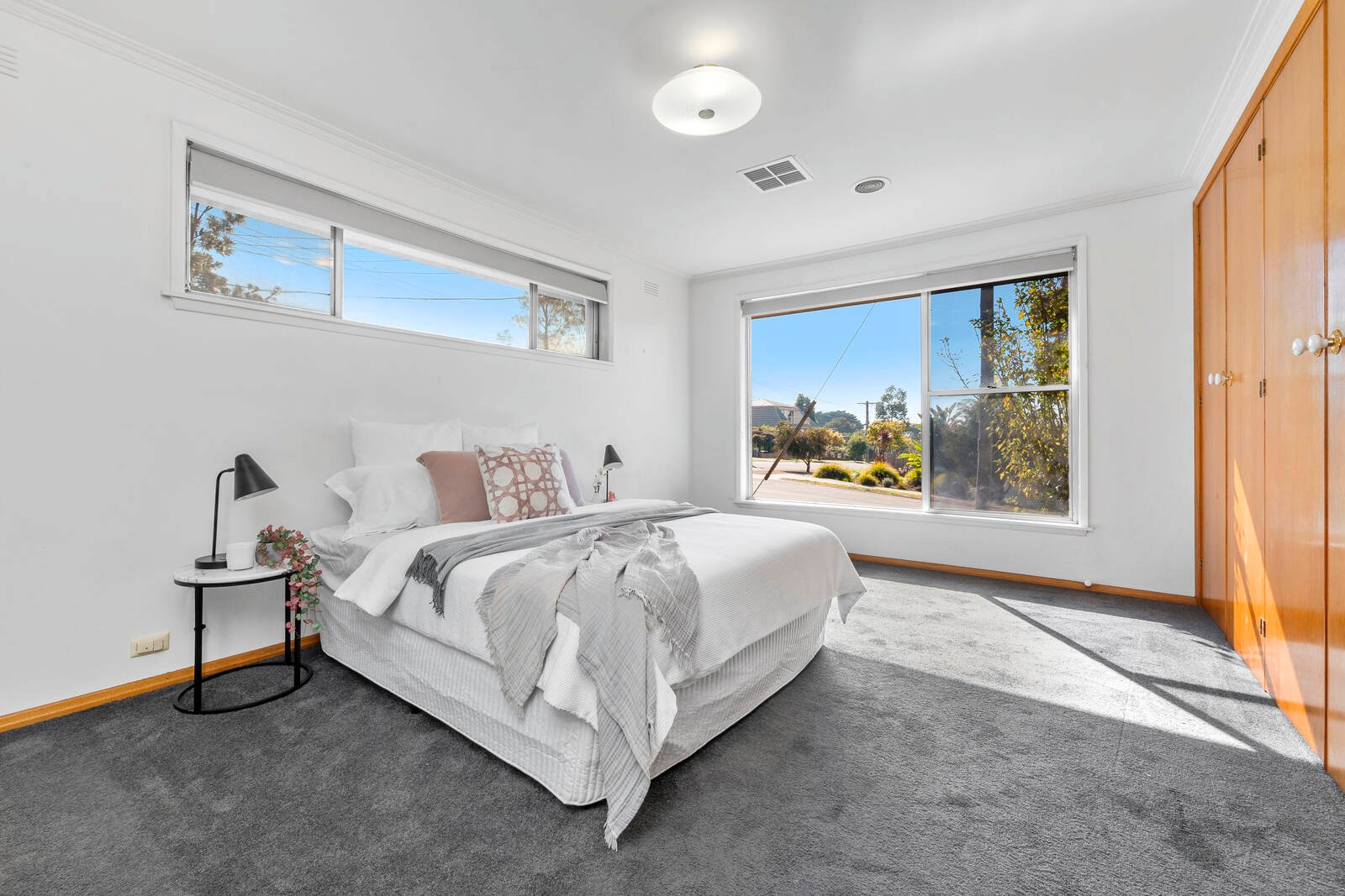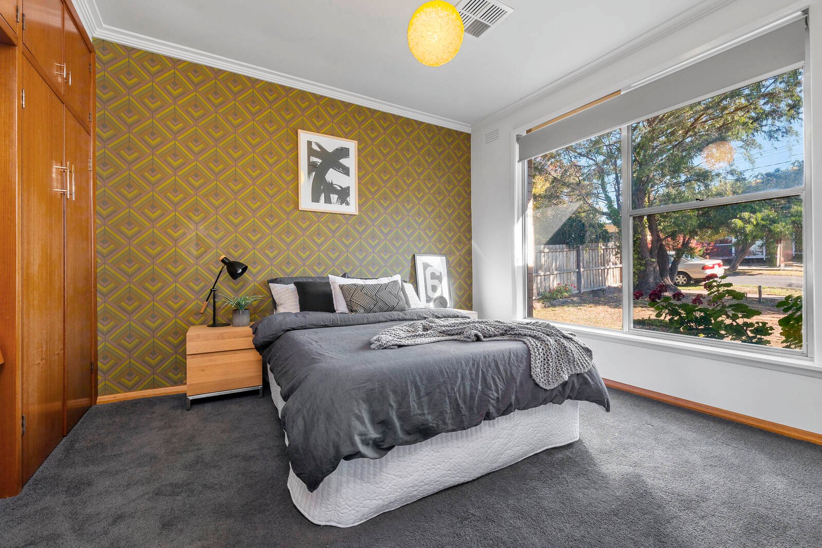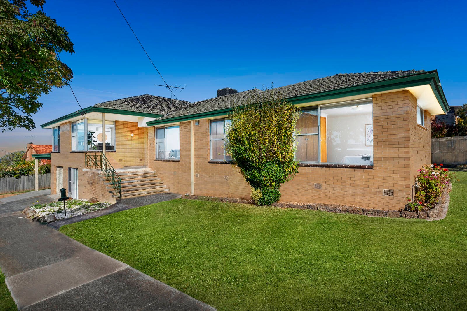 - 2 bathrooms with Mid-century features are central to the bedrooms.
