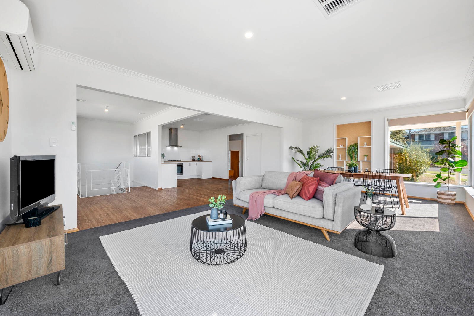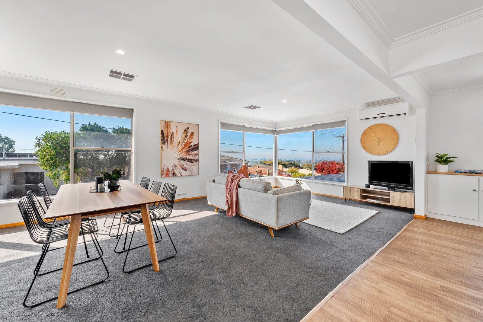 Timber floors greet you as step into the two-way entrance that steps up to the spacious open plan kitchen dining living that will accommodate any family. A separate second living, which still enjoys views gives plenty of flexibility for the larger family.
