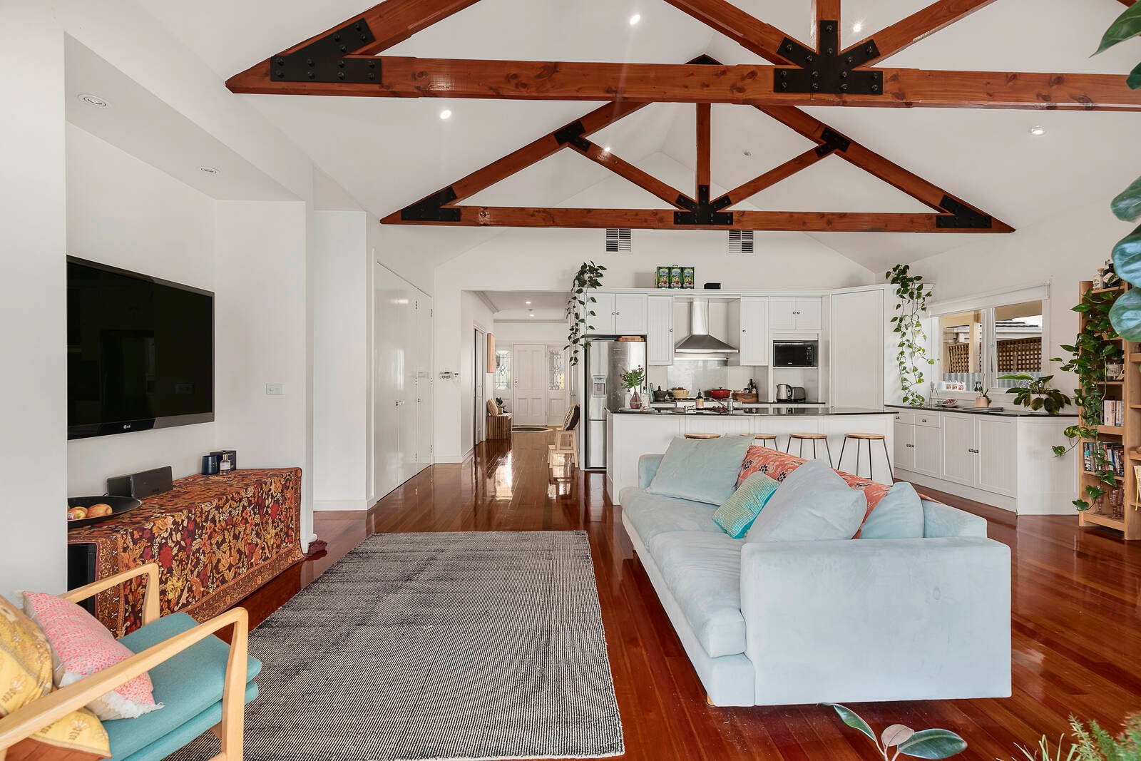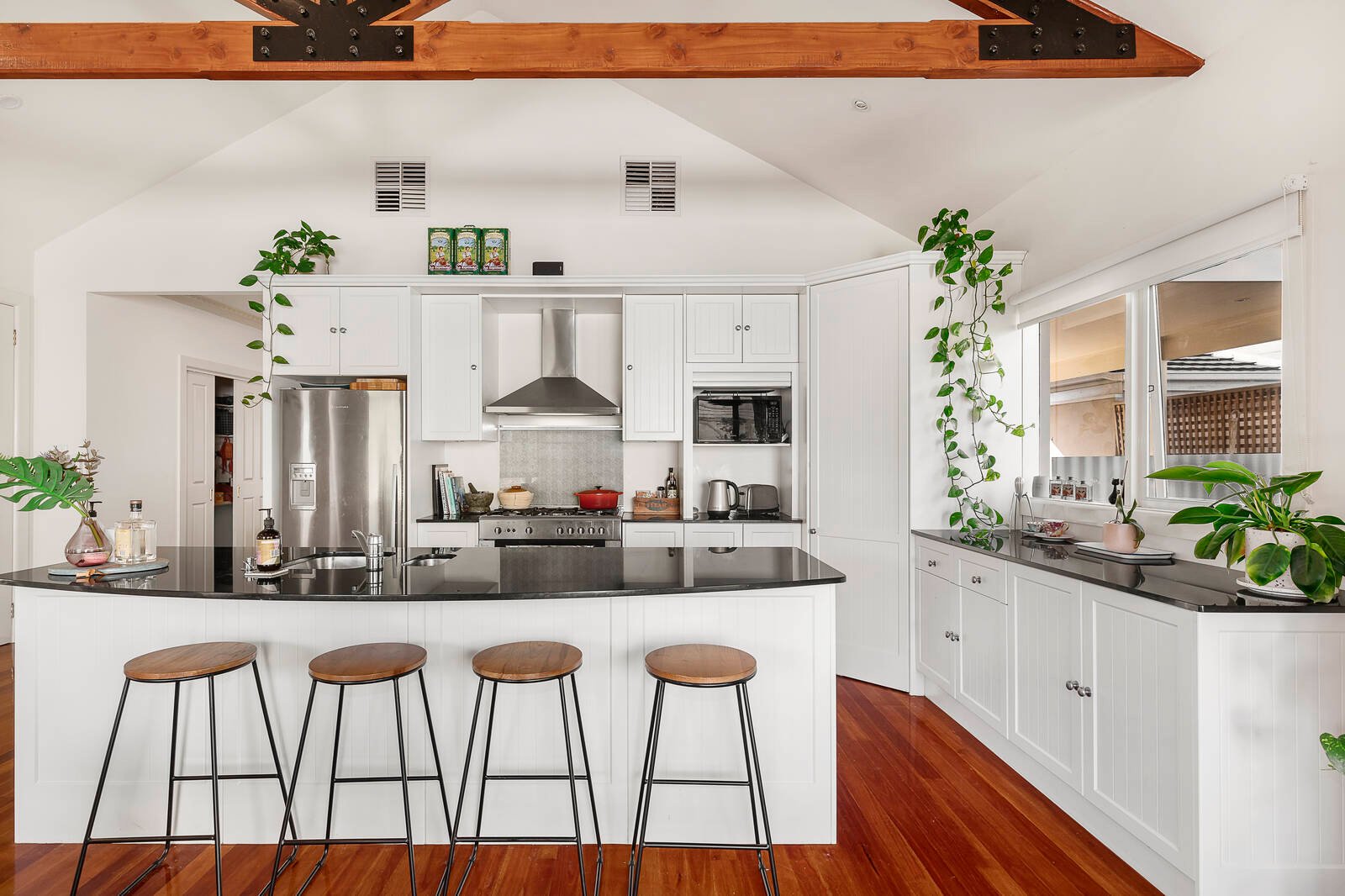 Warm and welcoming with a prestige La Germania appliance kitchen overlooking light-filled living across a stone-topped dining-bench, this centrally heated and cooled home stars glossy polished boards, generous built-in robes and a great garden with outdoor shower, plumbed BBQ area and an abundance of parking including a carport.