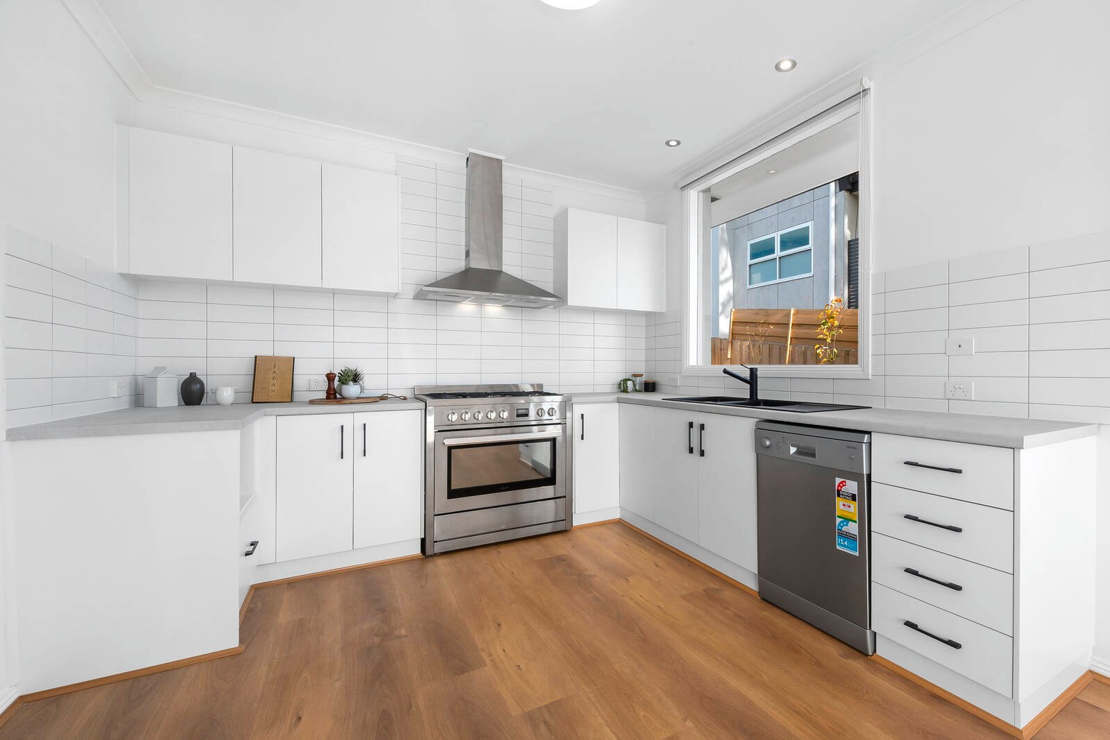 The elegant kitchen features stainless steel appliances including a 900mm freestanding oven and cooktop, excellent storage, ample bench space and chic black tapware and fittings. Perfectly positioned to take in the views and access the dining area for effortless entertaining, this is a kitchen you will enjoy being in.