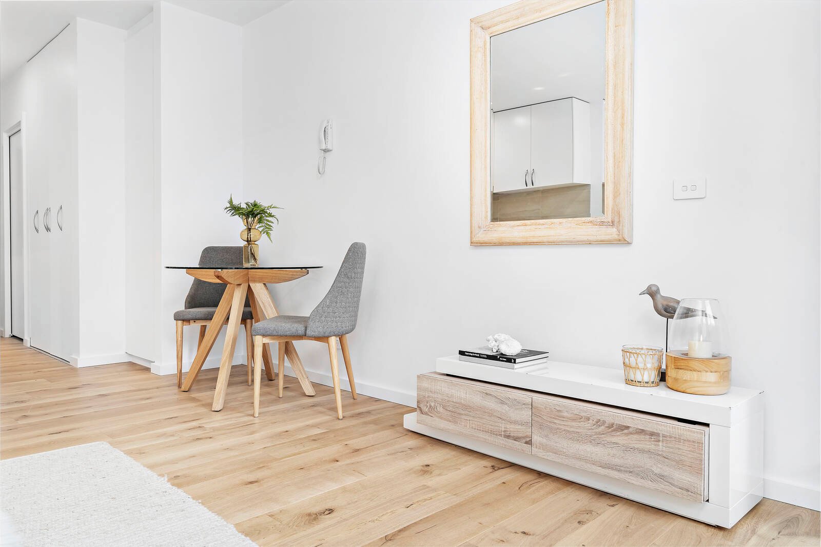 Cleverly zoned to the rear is the generously-sized master bedroom with mirrored built-in robes and private balcony, serviced by a sleek bathroom.