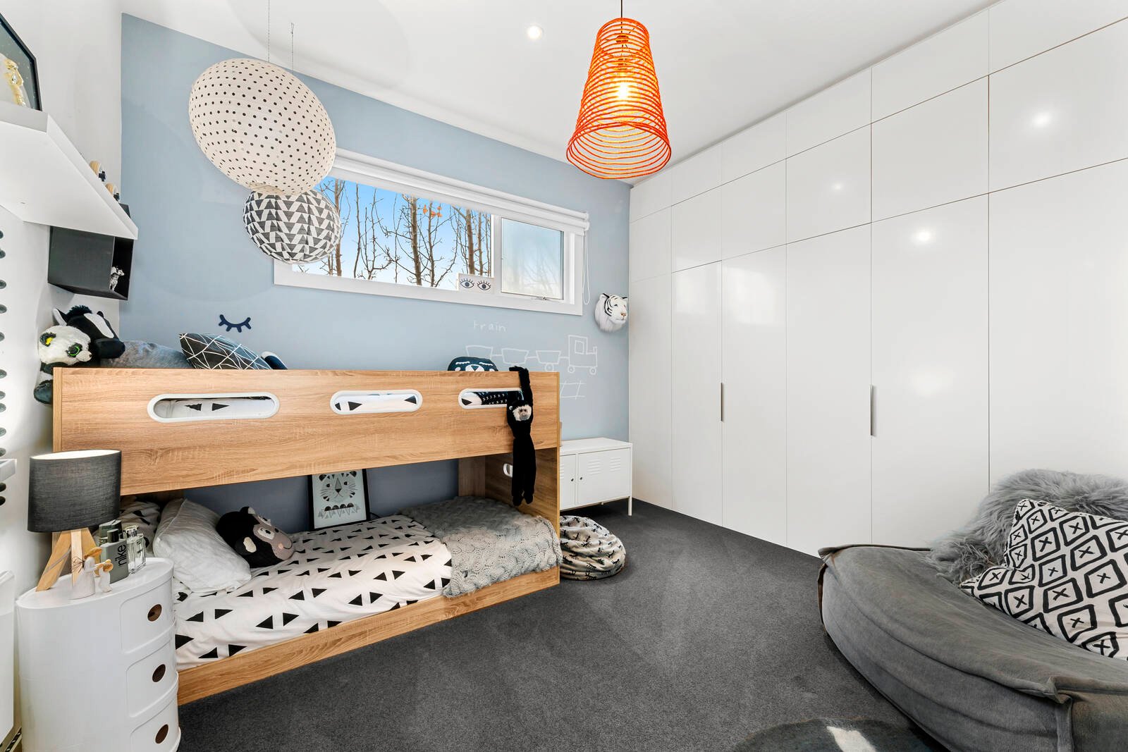 Open Plan north facing kitchen, dining and living opening out onto the backyard. The kitchen comprises of an island bench, large pantry storage, stainless steel appliances including gas stove top, dishwasher and Teppanyaki plate. A second living area/children’s playroom/study area with a great storage space/stage/reading bench overlooking the garden! Concrete flooring with a full length desk along one end and separate heating and cooling, this really is a very versatile and handy extra room to have.