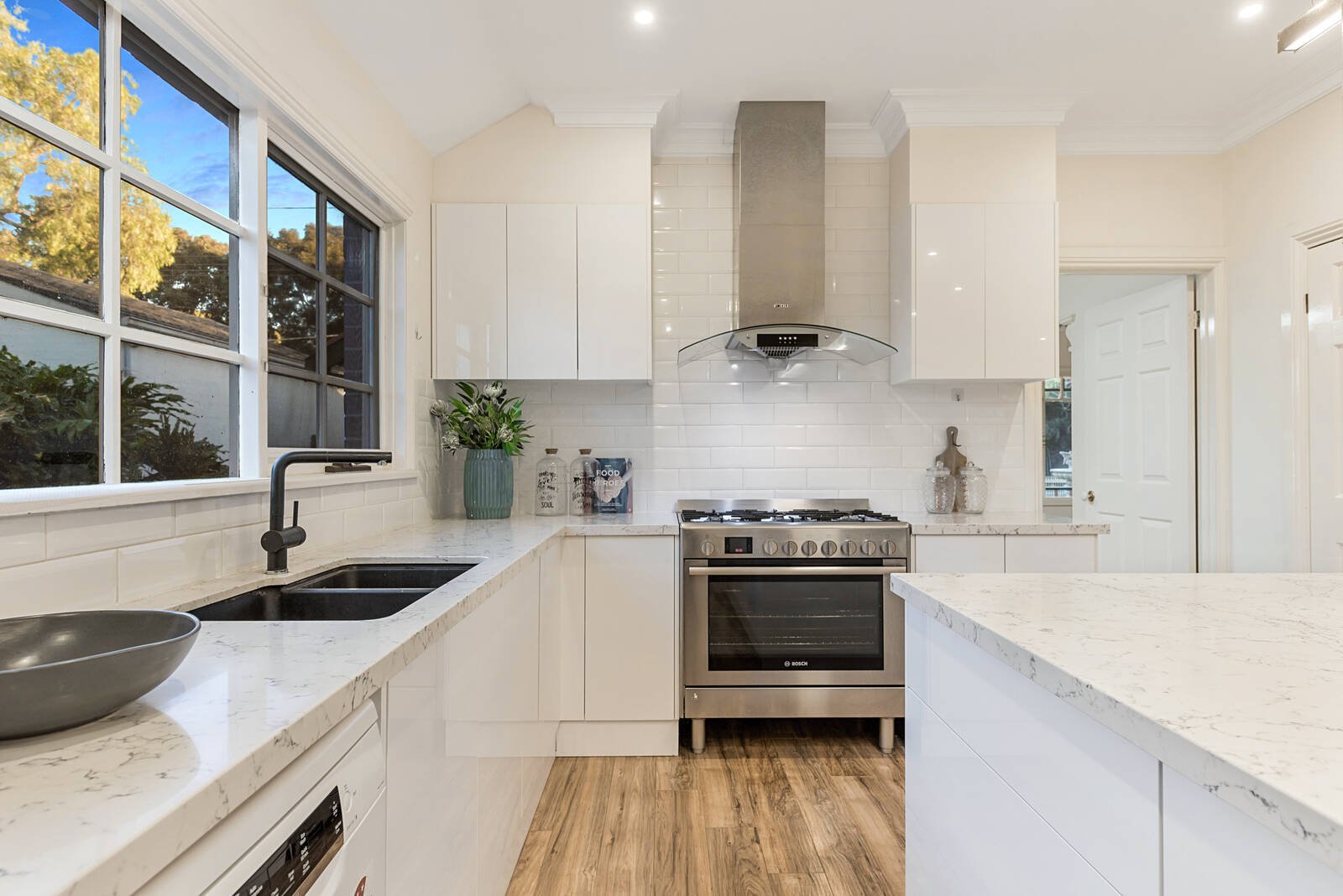Beautifully period-style with wide tessellate-tiled verandas, lofty corniced ceilings and elegant colonial windows, this old-world beauty offers a world of all-new luxury with bathroom, ensuite and even powder-rooms tiled floor-to-ceiling in glossy polished porcelain, benches topped with the latest Calacatta Caesarstone and a mix of plush carpets. A showcase of designer detail from sparkling 3-Phase designer lighting, to imported Italian sink and tapware, to German wideboard flooring, the home has every contemporary comfort with ducted heating and cooling plus reverse-cycle air-conditioning, airy ceiling fans and big robes. Even the vehicle accommodation is ideal for modern life with a double auto-garage plus parking and a second crossover to allow boat, van or caravan.
