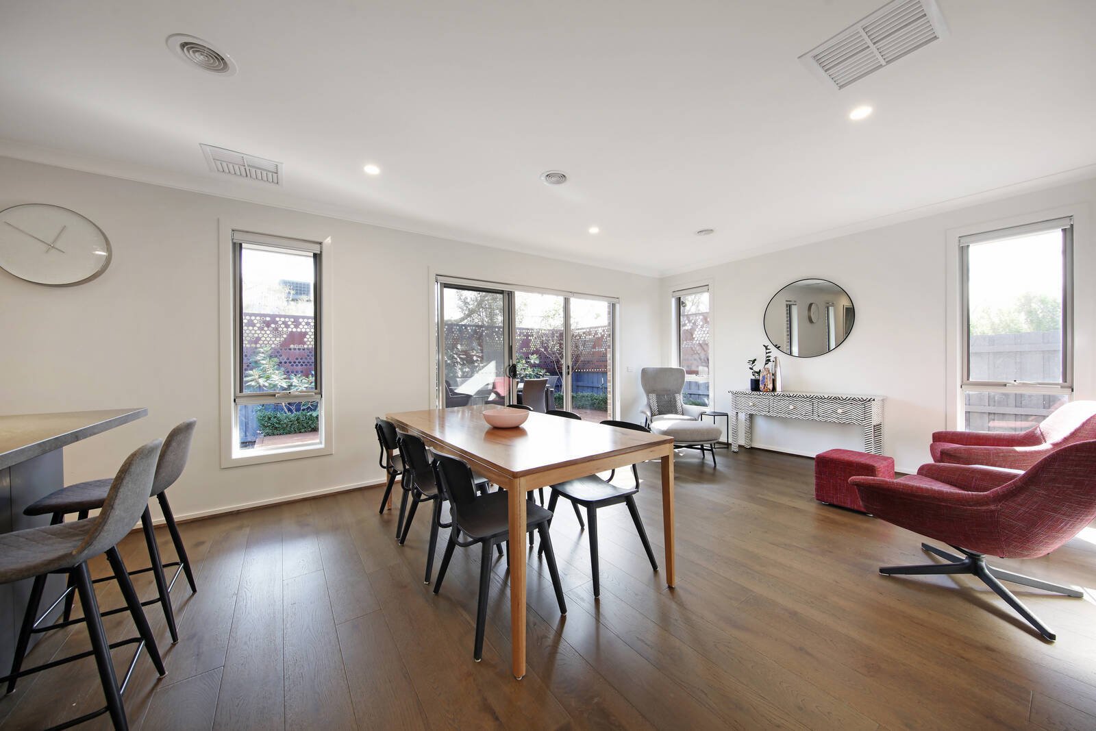 A separate lounge with custom joinery and small courtyard highlights dual-zoned living, whilst a sun-drenched deck promotes outdoor entertaining.