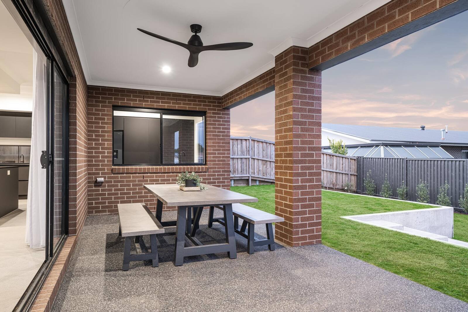 In the kitchen you will find an elegant chefs’ kitchen with an oversized black stone island bench with a single sink, also offering generous bench and cupboard space throughout. To complete this magnificent space, a walk in appliance station/butlers pantry exists along with integrated fridge, ample bench space & sink overlooking the outdoor area & backyard.