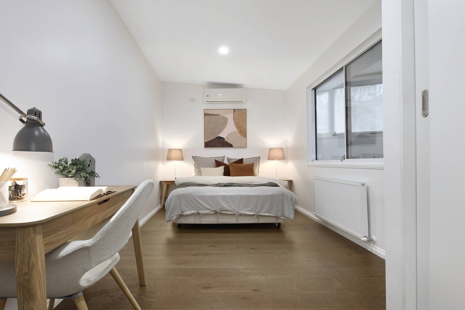Three bedrooms are all appointed with BIRs (main with deluxe ensuite), and are enhanced by a stylish fully-tiled bathroom, hydronic heating, split system AC, storage room and off street parking.