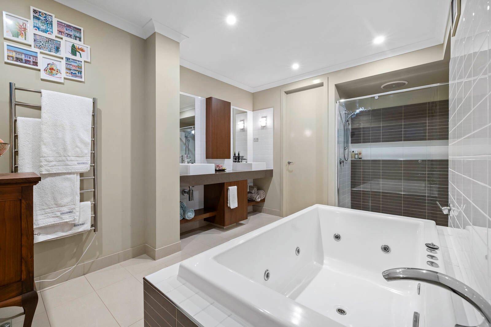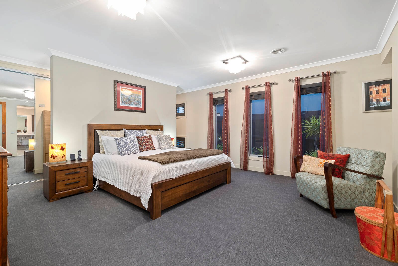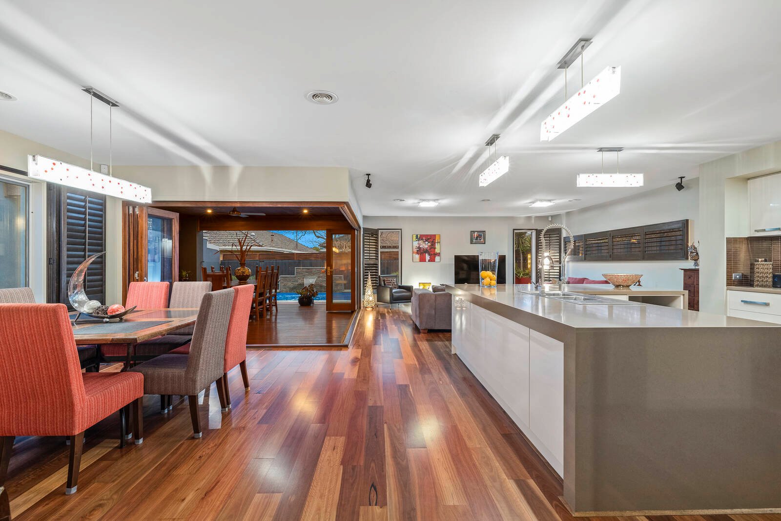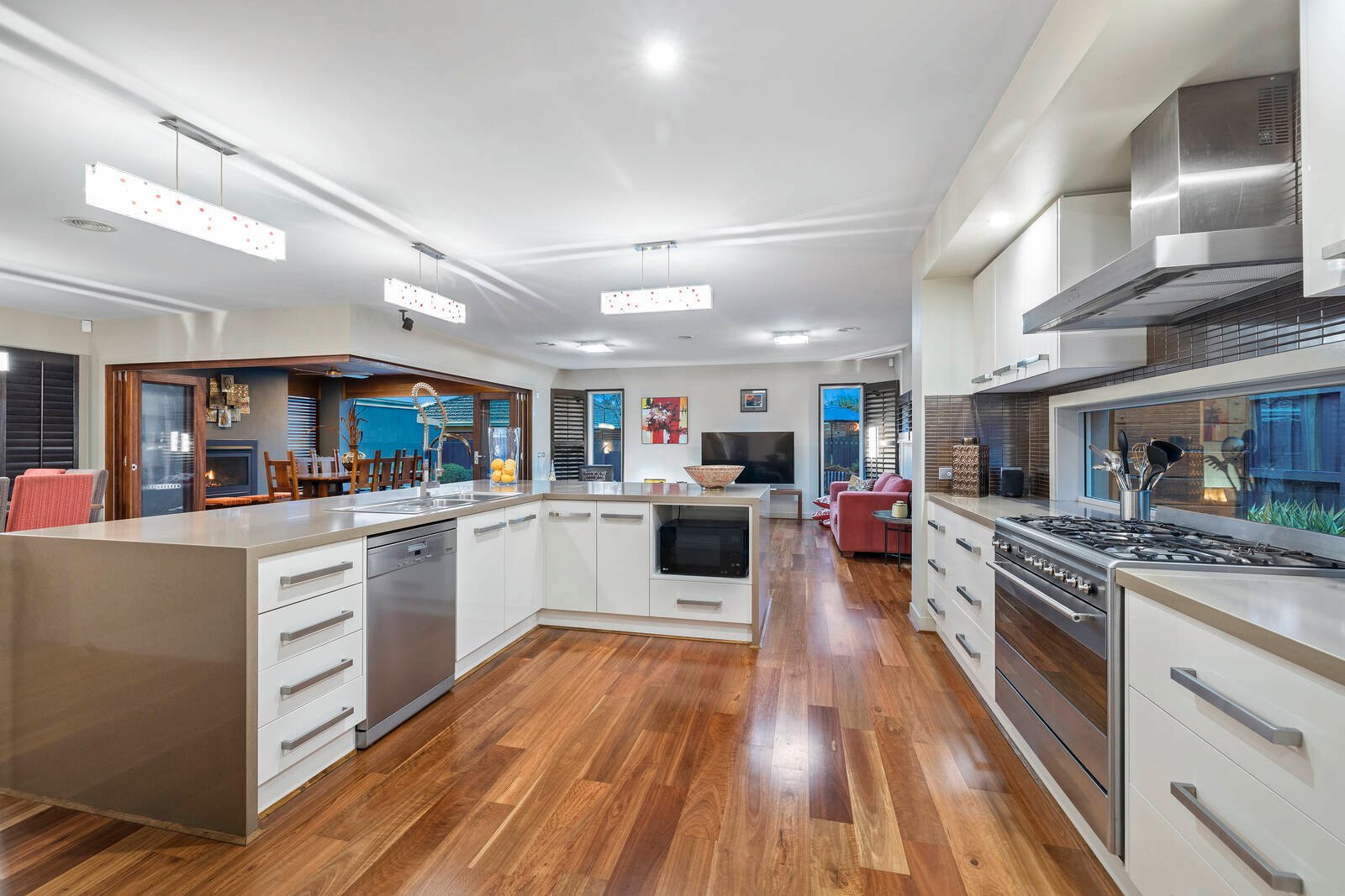 Every lifestyle extra is considered too – from a true butler’s pantry (with sink and more stone benchtops), to walk-in and walk-behind robes (in addition to built-ins), to gasfire-heating and fan-cooling for the al fresco zone. Centrally heated, cooled and alarmed with sound-wiring and video-intercom to the front gates, this luxury family home has more outdoors too. There’s room for kids and pets to play securely in auto-gated lawned front gardens, space to splash out in the solar-heated, glass-fenced pool in the entertainers’ backyard, and plentiful parking in a generous double auto-garage.