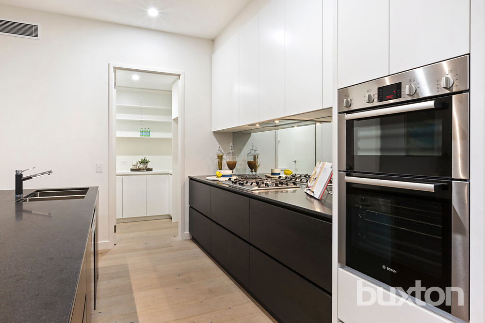 Starring the latest slimline stone benchtops for the sophisticated Bosch kitchen and streamlined frameless-screened bathrooms including two luxe dual-vanity ensuites, the home is a showcase of leading-edge interior design with chalky Oak floors, vast full-height walls of glass, 3m ceilings and perfect practicalities including butler's pantry, climate control, custom cabinetry and a double garage with storage and workspace.
