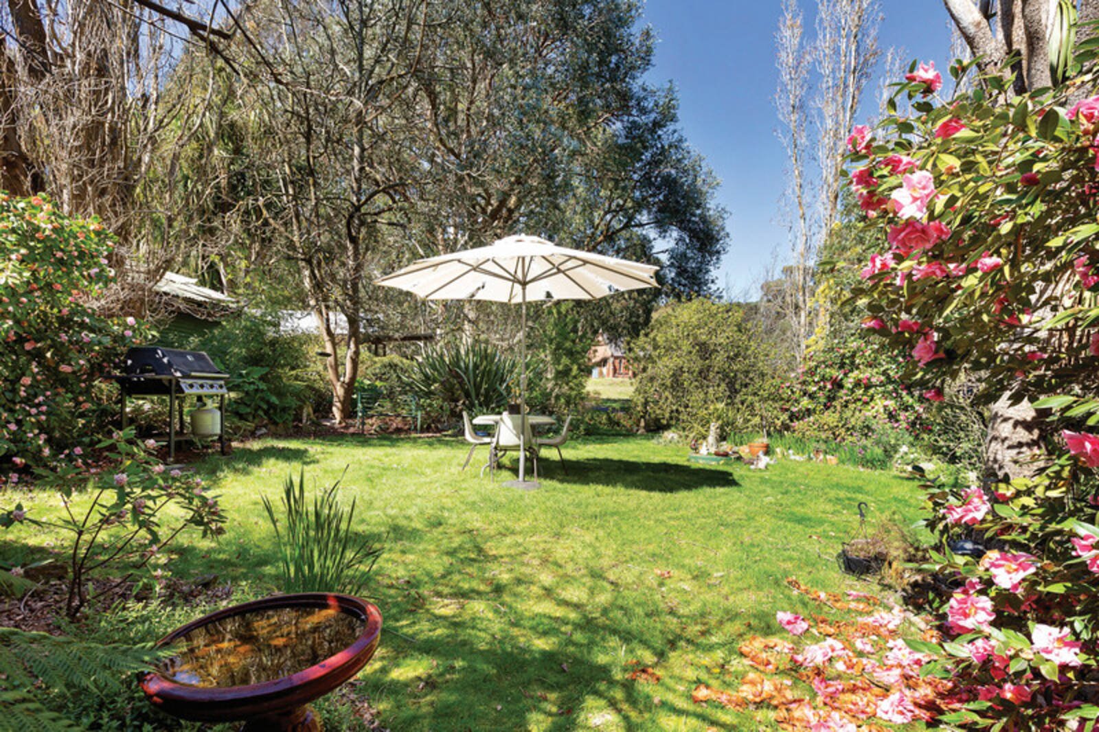 Comprising two bedrooms plus study, the master of grand proportions, a quaint but functional kitchen with adjoining meals area and lounge with both wood fire and split system for year-round comfort. The bathroom has shower and bath with a separate toilet located off the laundry.