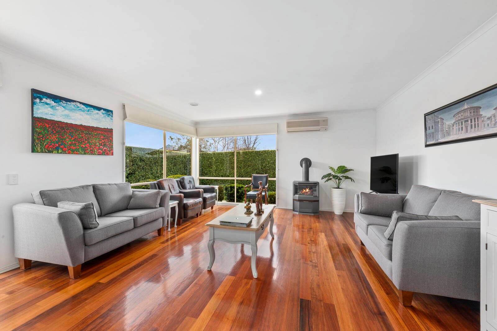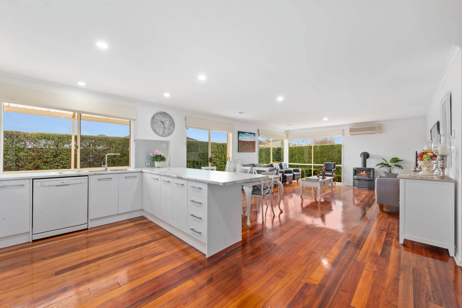 Offering a cleverly designed floorplan to maximize space and functionality. The spacious open plan kitchen, living and dining zone is the heart of the home and is bathed in natural sunlight. It offers a gas log fire as well as a split system for comfort all year round. The stylish and recently updated kitchen offers an on-trend colour palette, near new appliances including a Westinghouse oven and induction cooktop, dishwasher, soft-closing cabinetry and ample storage and bench space. The large, second separate lounge room is located at the front of the home and provides the perfect kids room, movie room or a peaceful space to wind down at the end of the day.