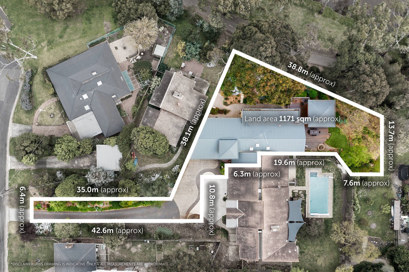 The very large site of 1170m2 is a battle-axe allotment with a reciprocal right of carriageway with the property on the east.