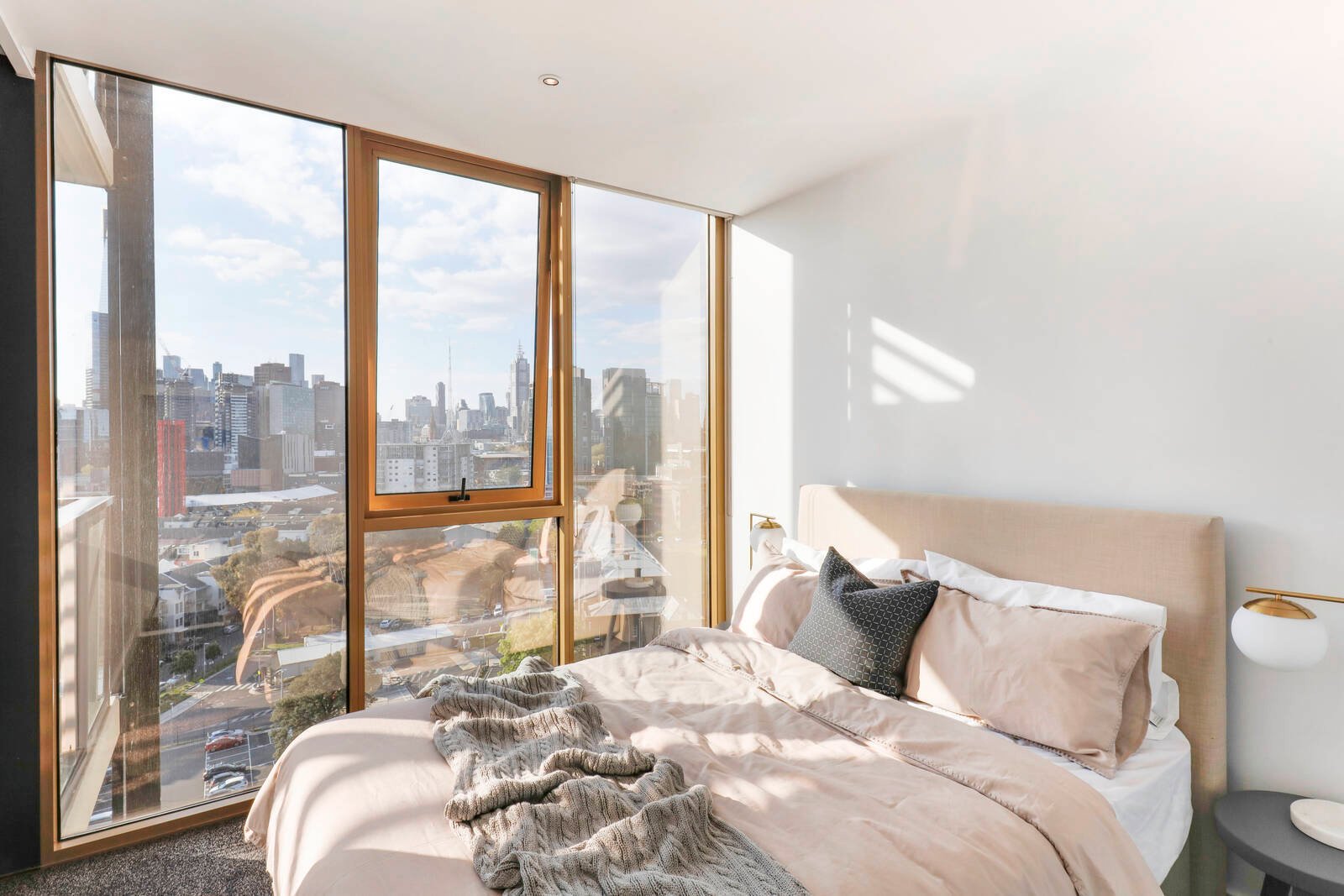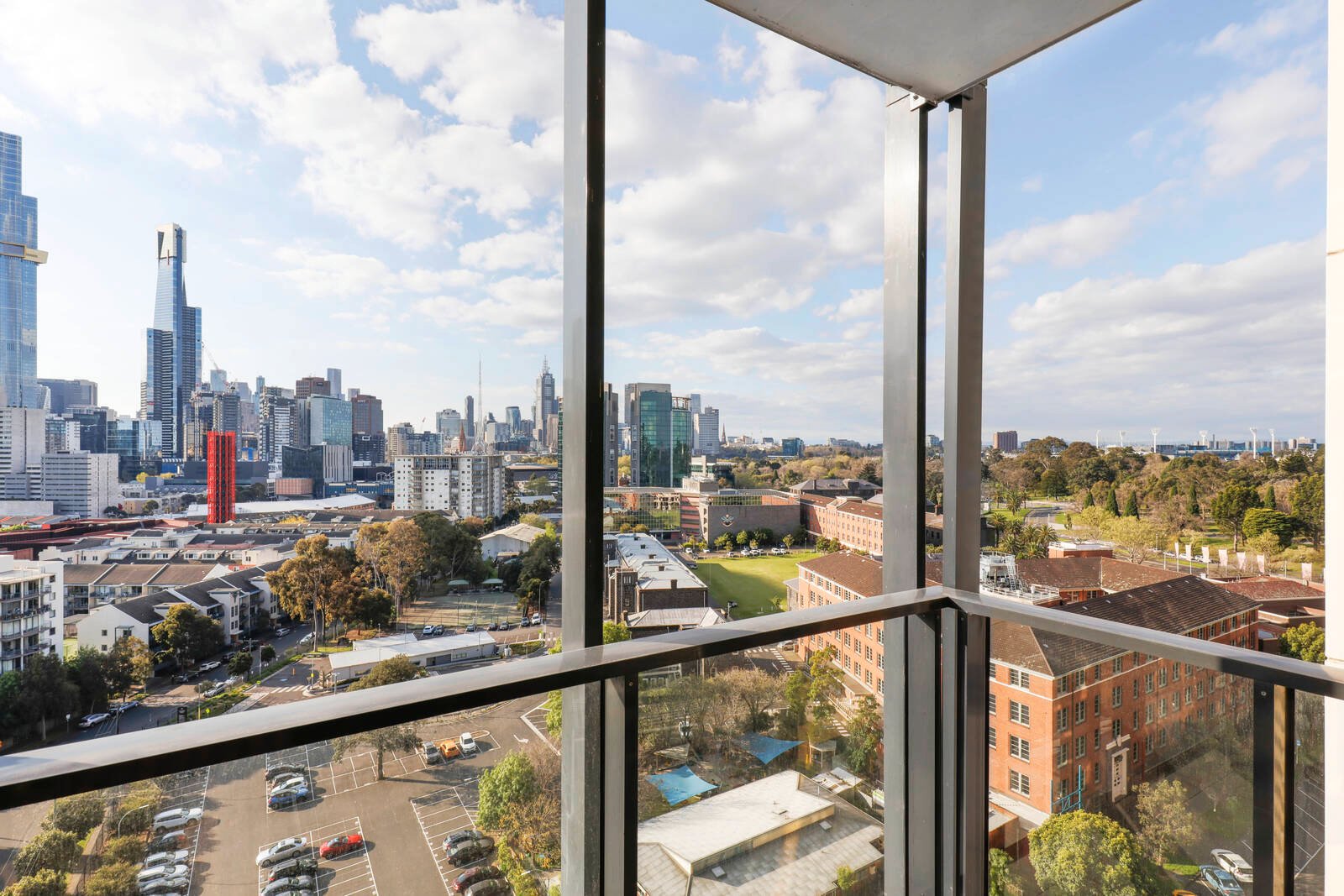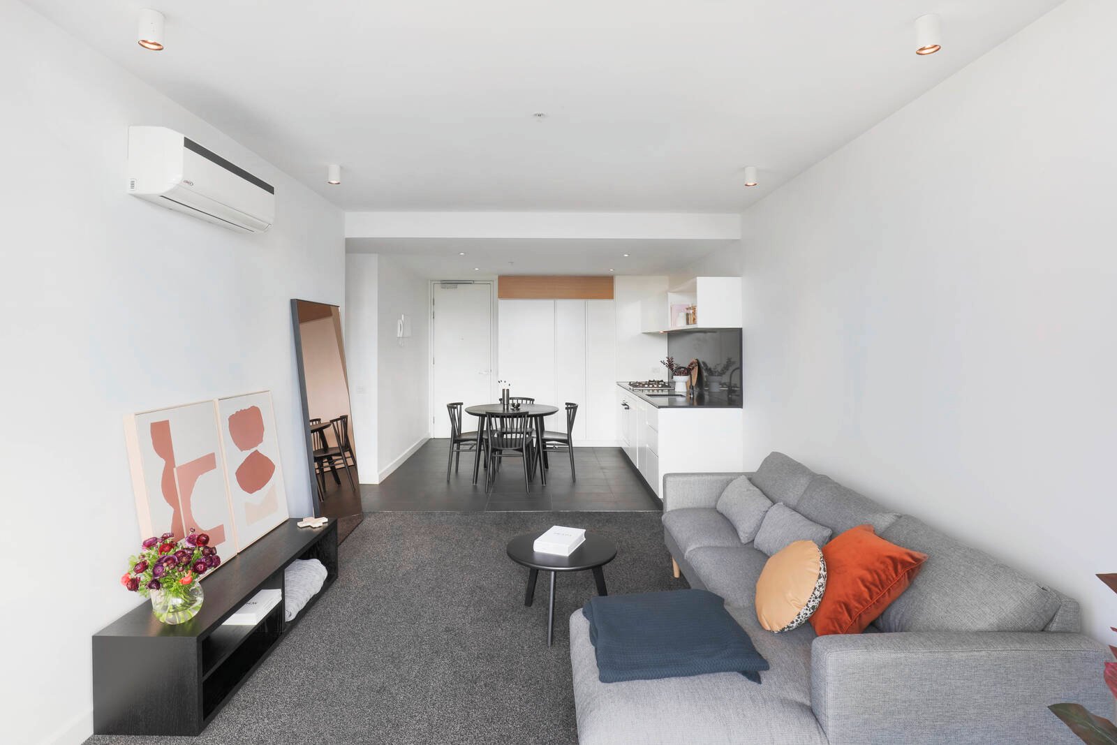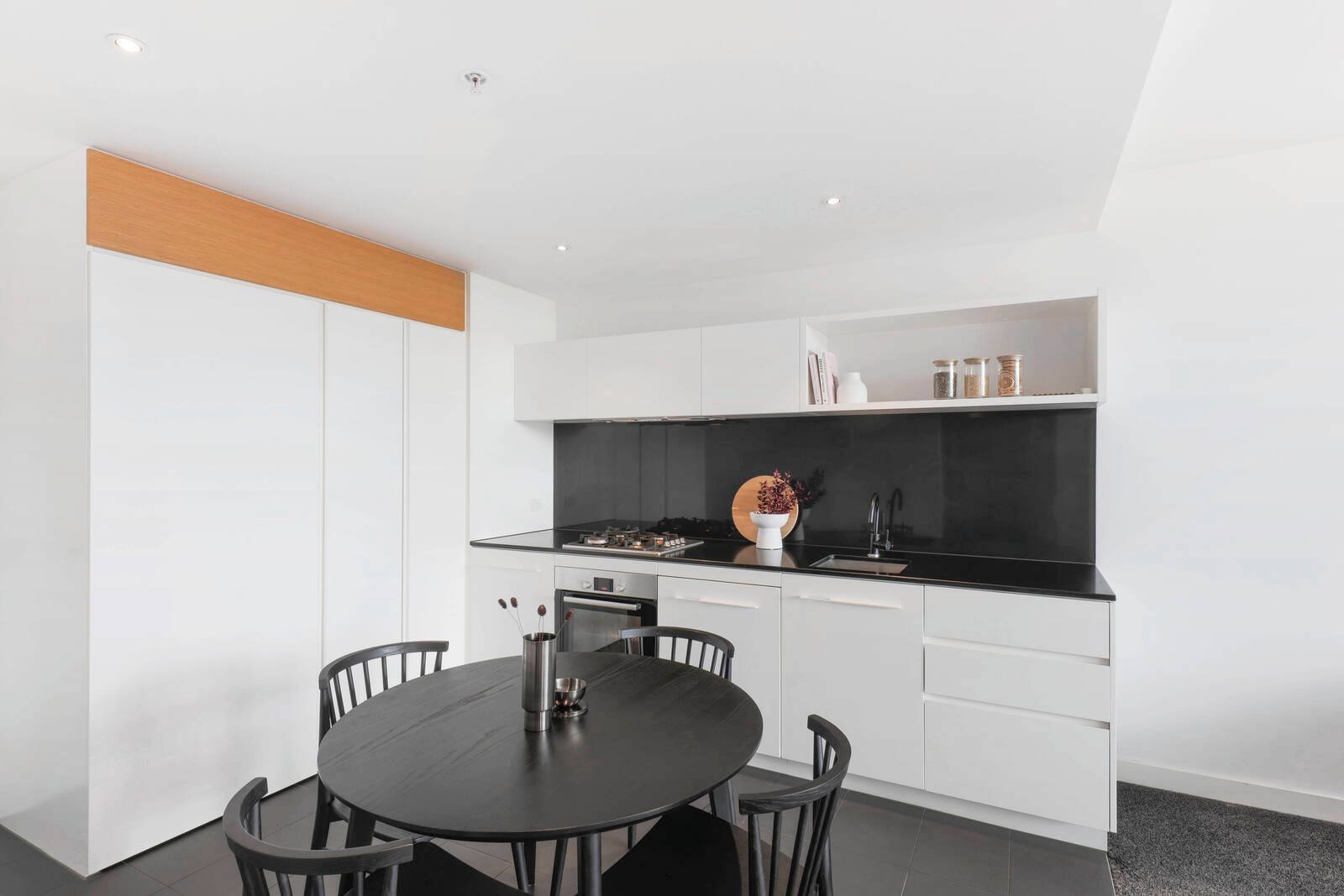Capturing northern light with ease through window-walled, floor-to-ceiling glass, discover a state-of-the-art kitchen with stone bench top, glass splashback, stainless steel appliances with gas cooktop and dishwasher. Spacious open-plan living and dining which opens out to an oversized, privately screened undercover balcony with uninterrupted views of the spectacular city and Southbank skyline extending across treetops to the MCG.