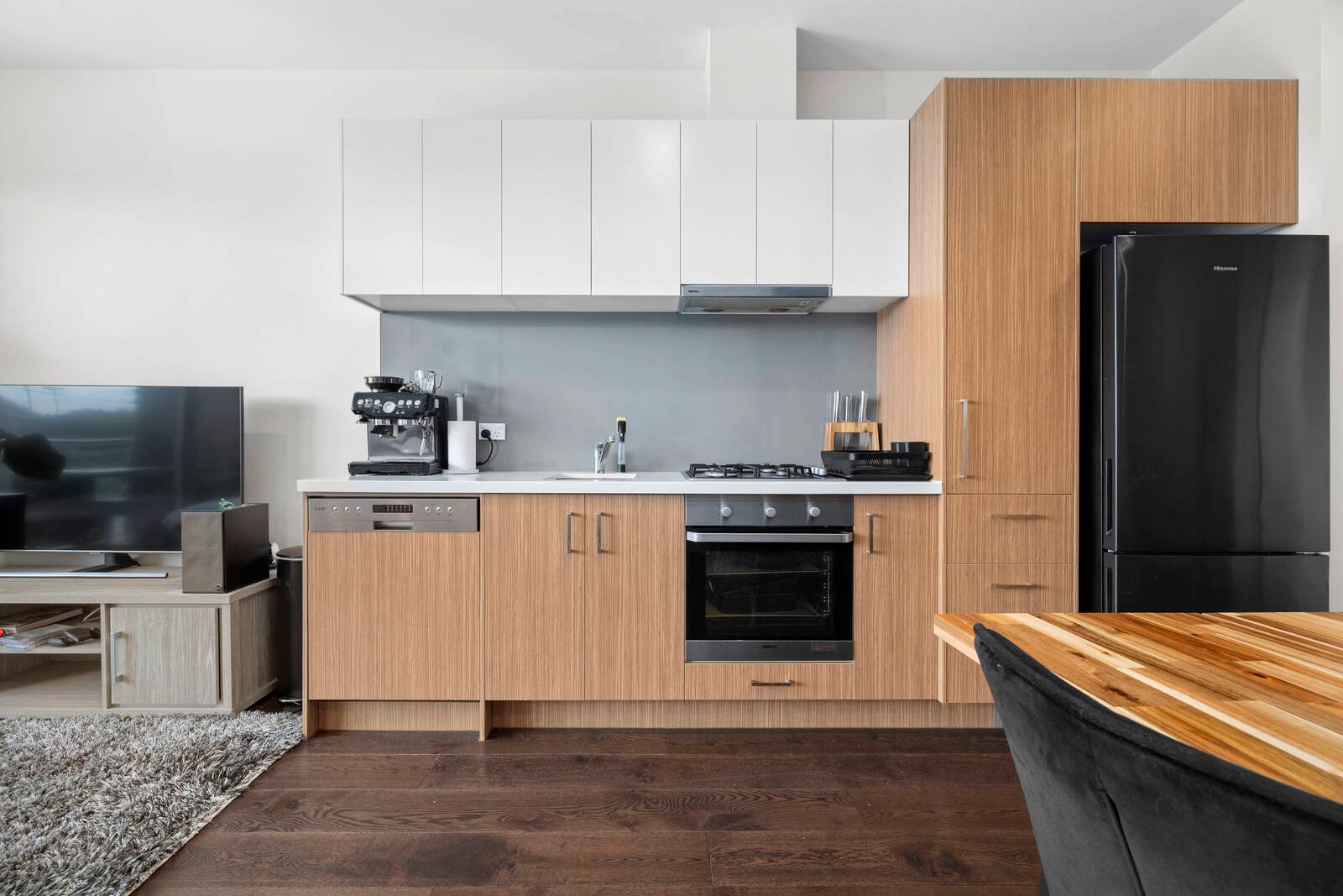 Opening out with an airy open-plan flowing to a full-width balcony plus a secluded private balcony for the master, this beachside apartment has clever features at every turn – including a Euro laundry hidden alongside the prestige kitchen, a surprising walk-through robe to the two-way bespoke bathroom, and a bonus ‘secret’ second WC. Distinctively detailed with cool stone benchtops, chocolatey oak floors and shiny mirror-robes, this reverse-cycle air-conditioned home has all the standard extras too - including intercom-entry, climate and noise controlling double-glazing, and basement garaging.