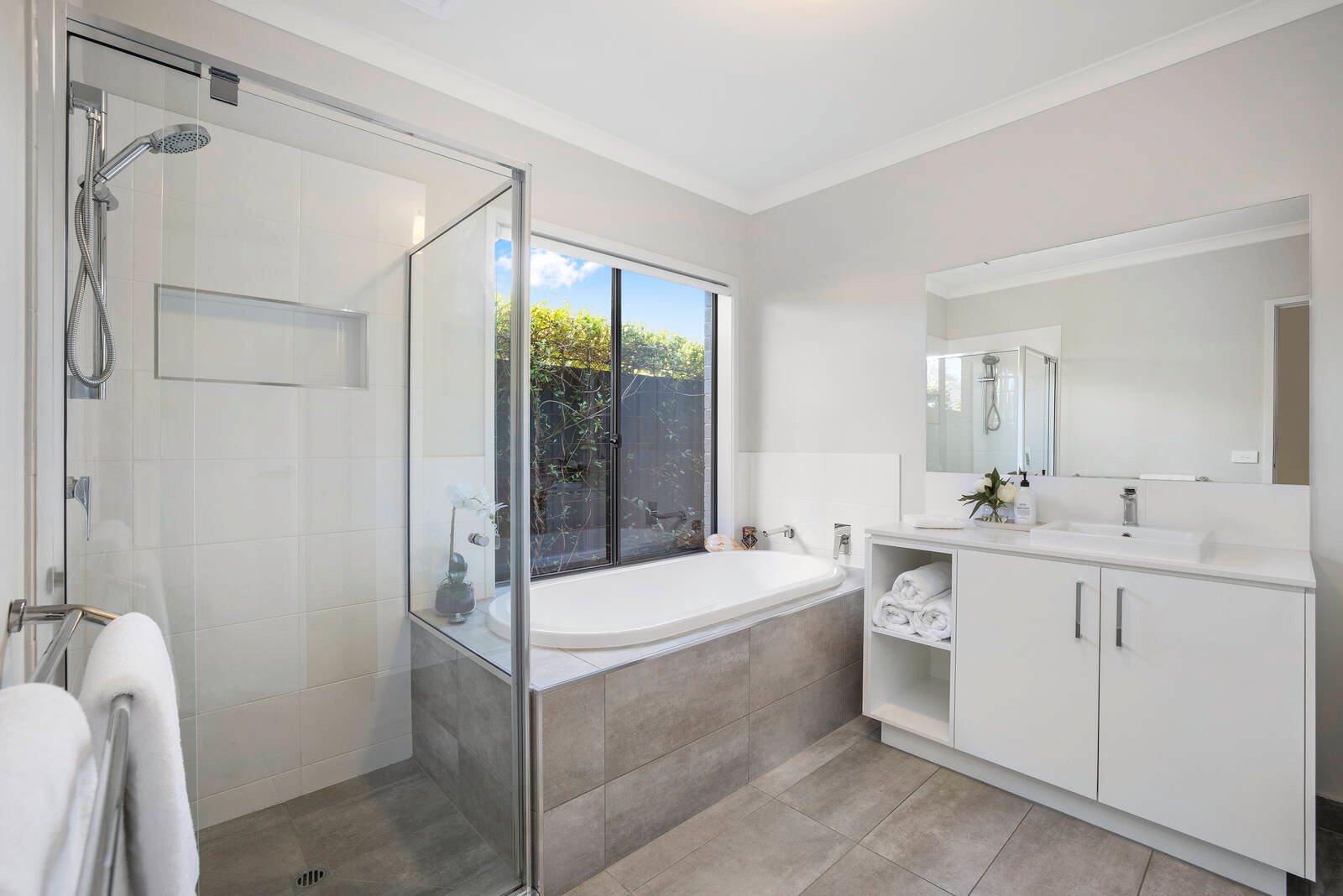 Boasting a thoughtfully conceived floorplan, the home has been cleverly zoned for family harmony. Upon entry, the elegant and peacefully positioned master is the first room you will encounter. Here, fashionable plantation shutters add a touch of sophistication while a large walk-in robe and luxe ensuite are also included.