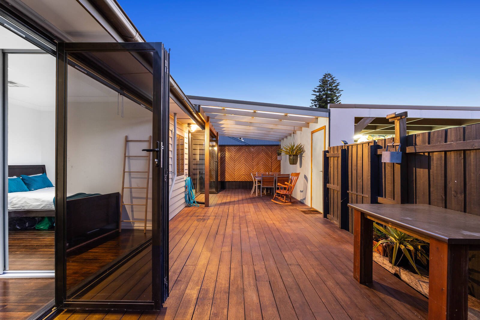 • Large, weather-protected entertaining deck
