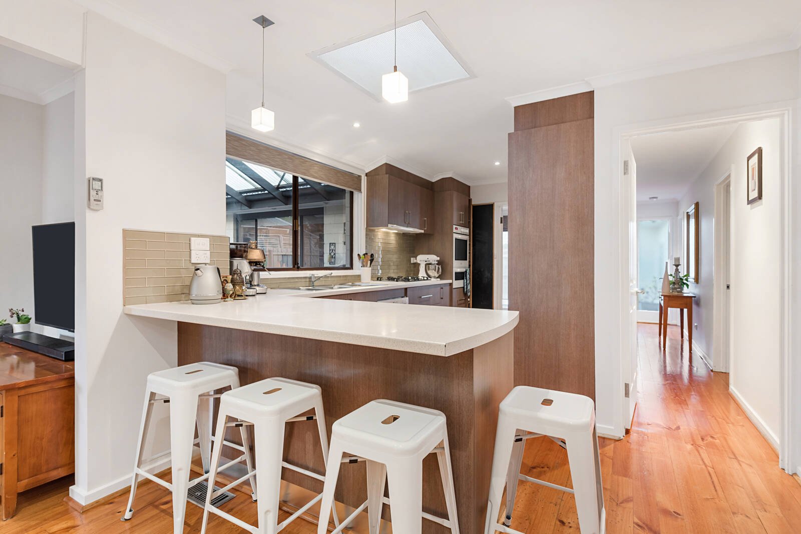 Beyond a freshly painted façade, the home opens to reveal warm timber floors which flow throughout the functional floorplan. Dual living zones are a real highlight for families and comprise a spacious lounge along with an open plan family/dining zone that spills to the leafy gardens. Right at the heart, the family-focused kitchen boasts sparkling appliances and a relaxed breakfast bar, whilst a choice of a sheltered alfresco patio and a sundrenched rear garden mean there is always somewhere perfect to enjoy the outdoors.