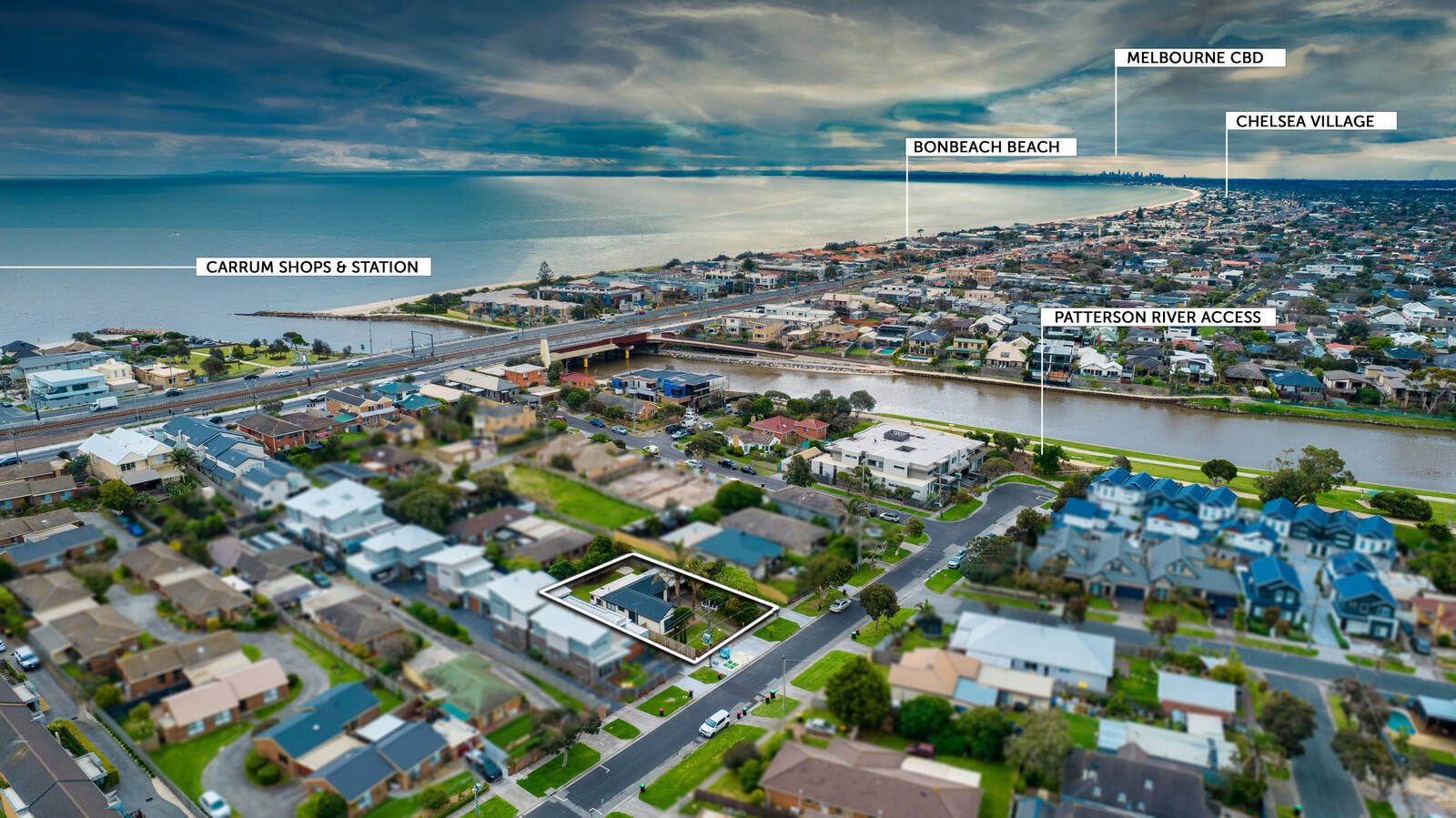 Nestled in a premier riverside cul-de-sac, this three-bedroom family home offers an unbeatable lifestyle opportunity in this sought after coastal pocket. Situated 100m (approx.) from the stunning Patterson River, where the walking trail leads you to one of the best beaches along the bay - your feet will hit the sand in minutes. Warm, welcoming and light filled, this beautifully presented charmer features a spacious open plan living room, complemented by a sleek stone kitchen with streamlined cabinetry and stainless steel appliances. Designed to make entertaining easy, the dining room enjoys double French doors opening to a large backyard which provides plenty of space to host guests and for the kids to play, while the front deck provides the perfect perch to soak up the sunshine. All three bedrooms share a stylish modern bathroom with walk-in shower, and you’ll also enjoy the comfort of a second w/c, split-system, double carport and storage shed. Exceptionally positioned to enjoy the very best that this in demand seaside suburb has to offer with vibrant eateries, shops and the train 300m (approx.) from your doorstep, the surf lifesaving club, foreshore playground and pristine beach a few steps further, plus excellent schools and Roy Dore Reserve are within walking distance