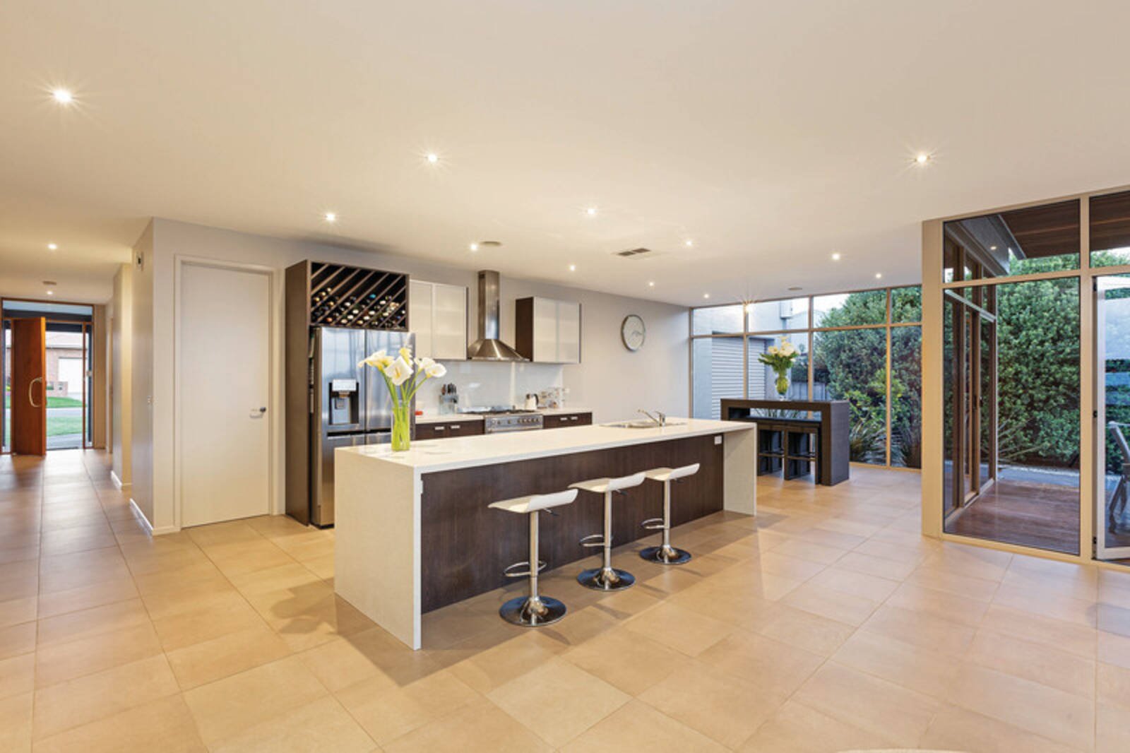 Extras in the house include drying cupboard, walk in linen, central gas heating and evaporative cooling, ducted vacuum with suction point in the kitchen, wired for Austar, rinnai infinity with temperature controls, 2.7M ceilings and 2.4 M doors throughout.