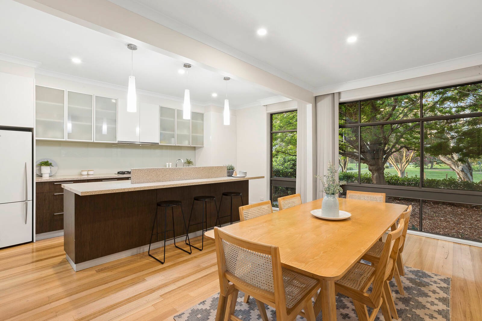Your Hampton East waterfront home comes with iconic mid-Century design and a panoramic park perspective. Facing north across a field of green to the waters of Basterfield Park’s lake, this breathtaking three bedroom, two bathroom mid-Century home is a notable example of the era – updated and extended with real respect for the architecture of the time.