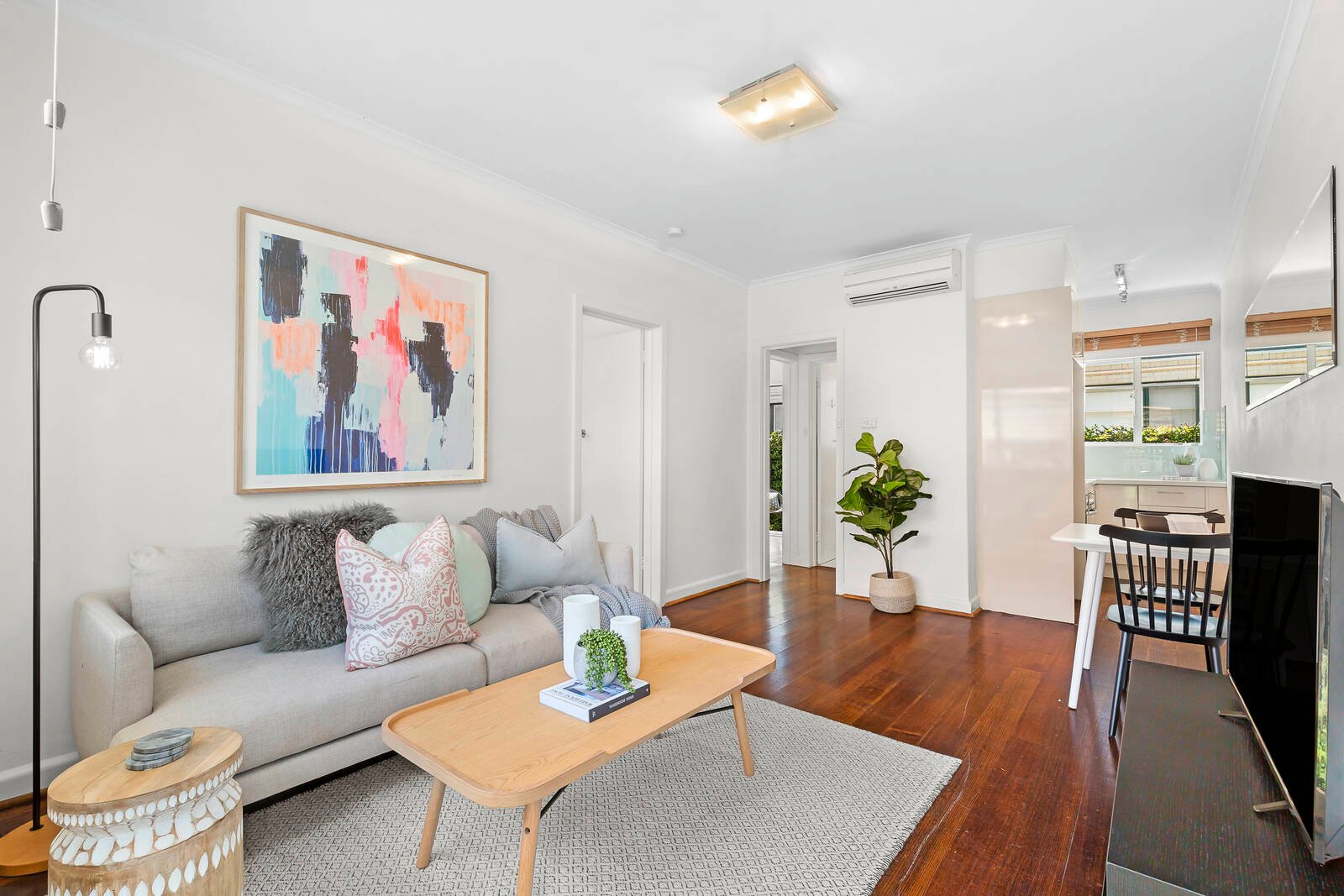 This light-filled abode in a boutique block of only 8 apartments offers open plan living and dining with split system,...