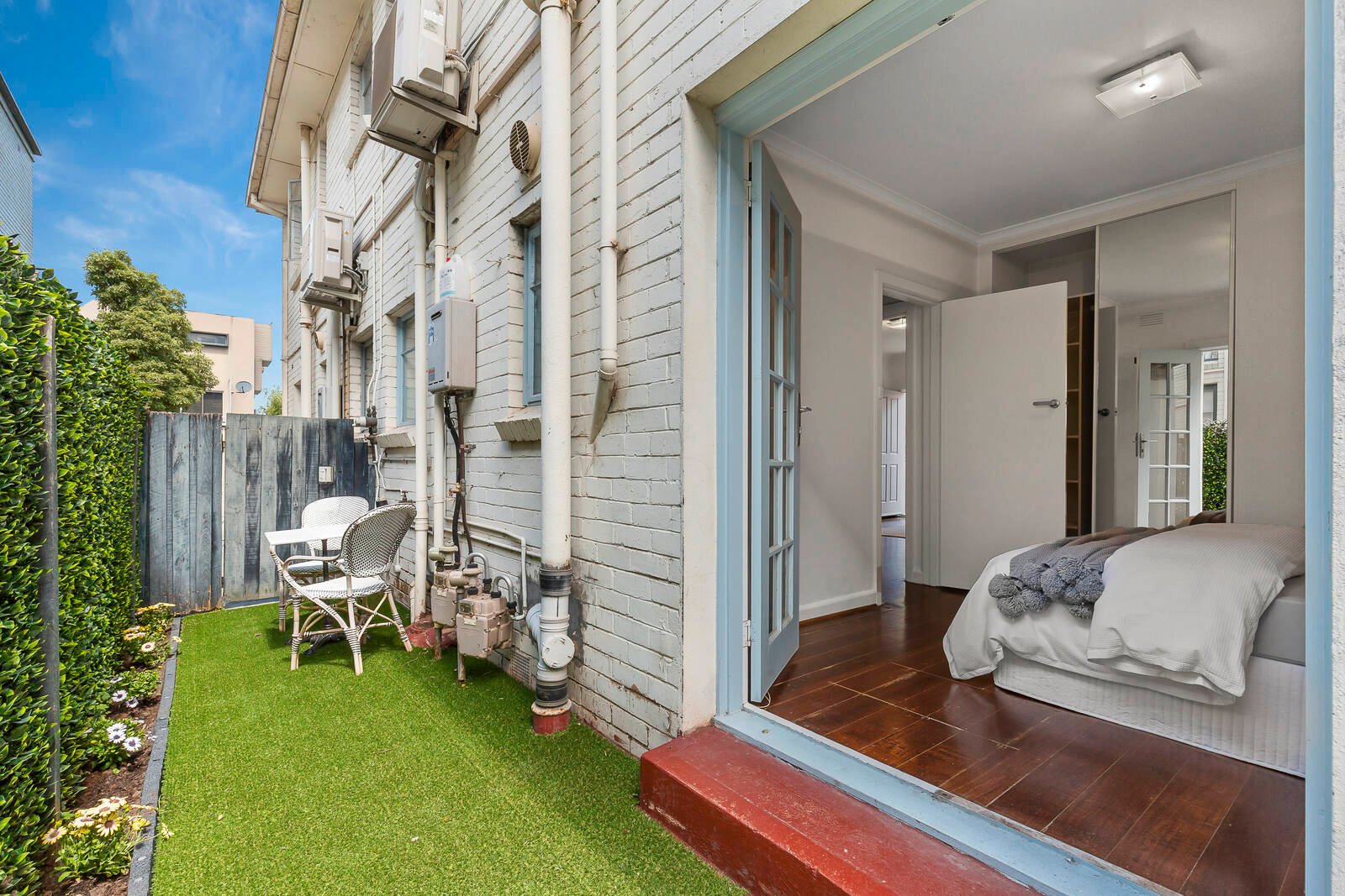 This light-filled abode in a boutique block of only 8 apartments offers open plan living and dining with split system, modern stainless steel kitchen featuring gas cooking and ample cupboard space. Two generous bedrooms with built in robes, the master bedroom with direct access to the courtyard are serviced by an updated bathroom and separate European laundry.