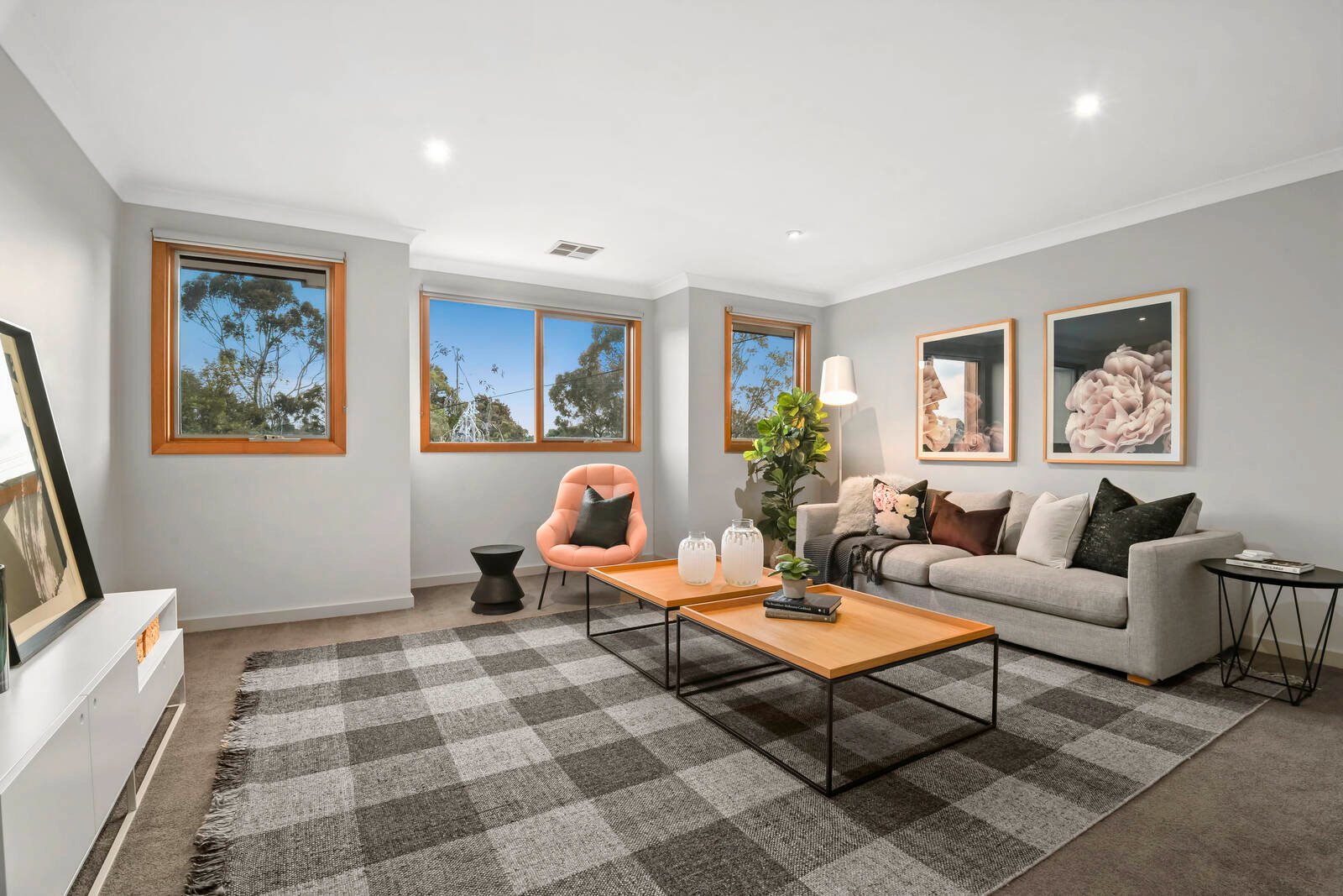 Open wide these big double doors and step into the space within...then step up and take a panoramic perspective on the park! Park-view out front, sun-bathed behind and super-sized inside, this elevated three bedroom, 2.5 bathroom home takes low-maintenance living to a new level! Facing north to the sun with vast living-dining flowing to entertainers’ decking, this substantial home steps to a panorama-view first-floor lounge - looking through the Reserve to the wide green spaces of Oliver Baseball Park!