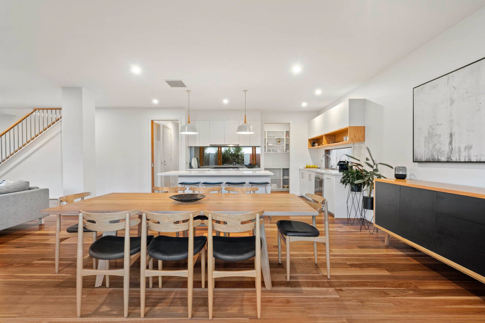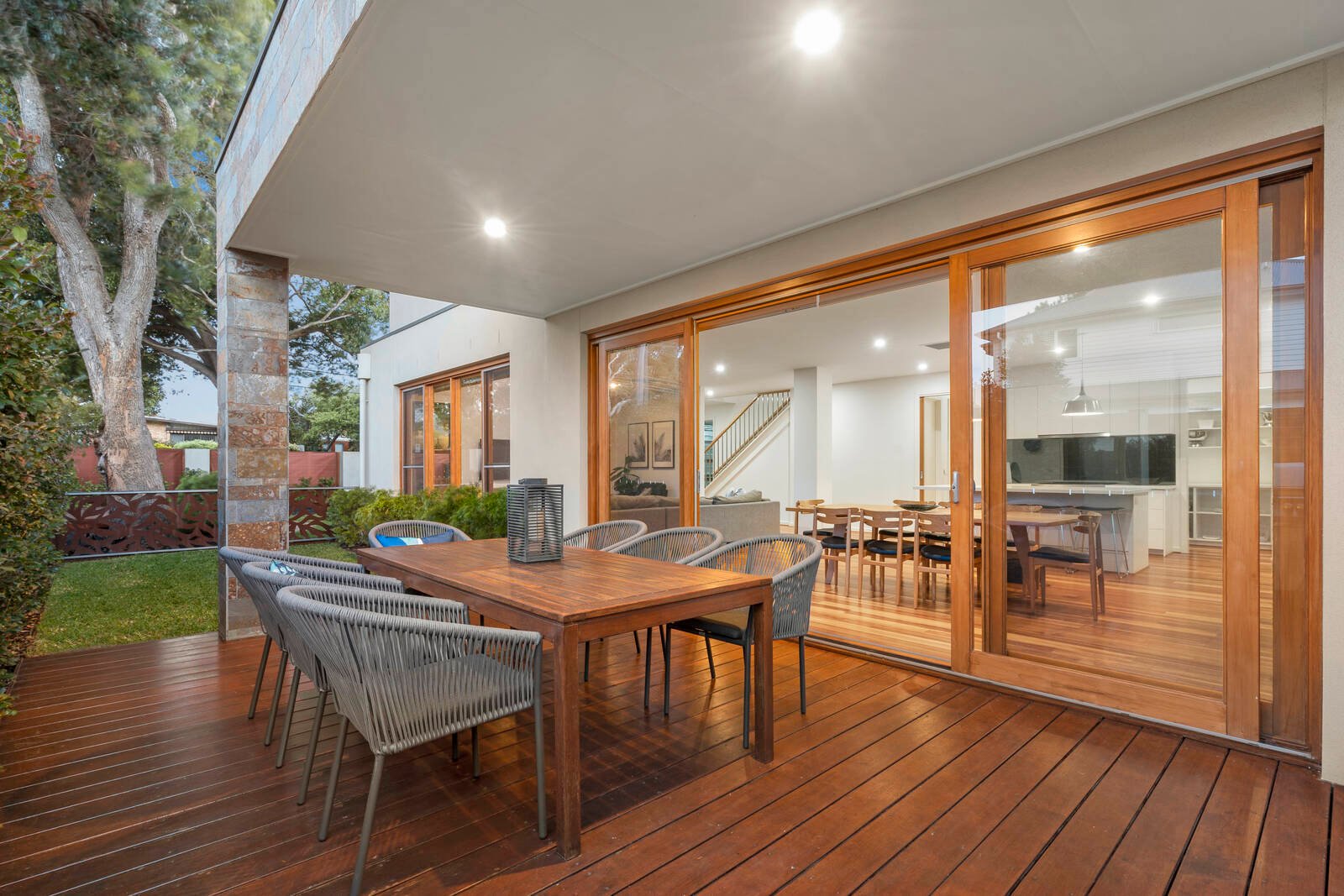 Northern light illuminates the expansive living and dining domain, revealing a beautifully-proportioned space of supremely elegant design. From here, glass sliding doors effortlessly connect to a covered entertaining deck with built-in BBQ and seating, set in entirely private gardens with beautiful spaces for the whole family to enjoy.