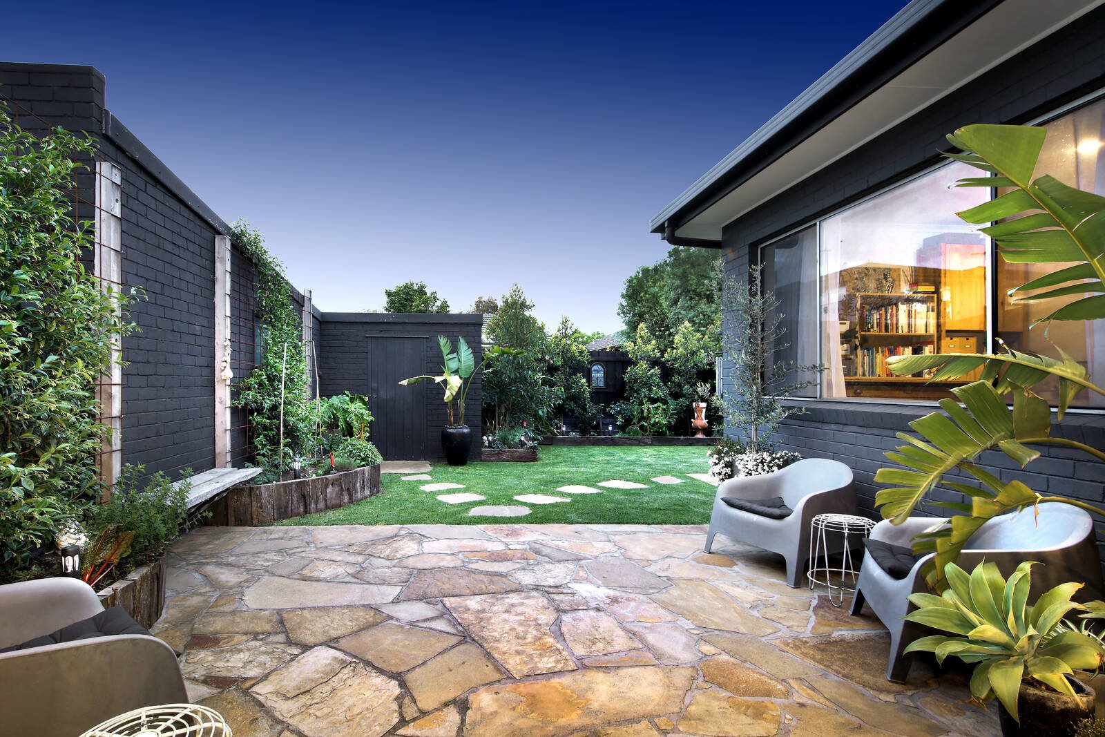 A serene indoor-outdoor family sanctuary complete with video intercom, ducted heating, split system AC, security entry, double glazed windows, sensor lighting, solar panels, double carport, double garage with workshop and abundance of off street parking.