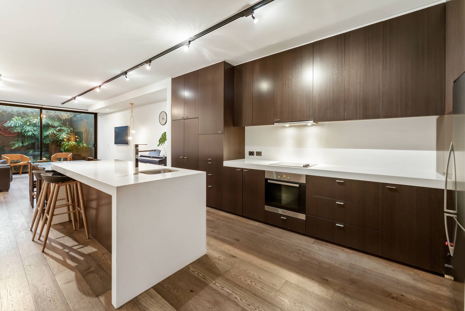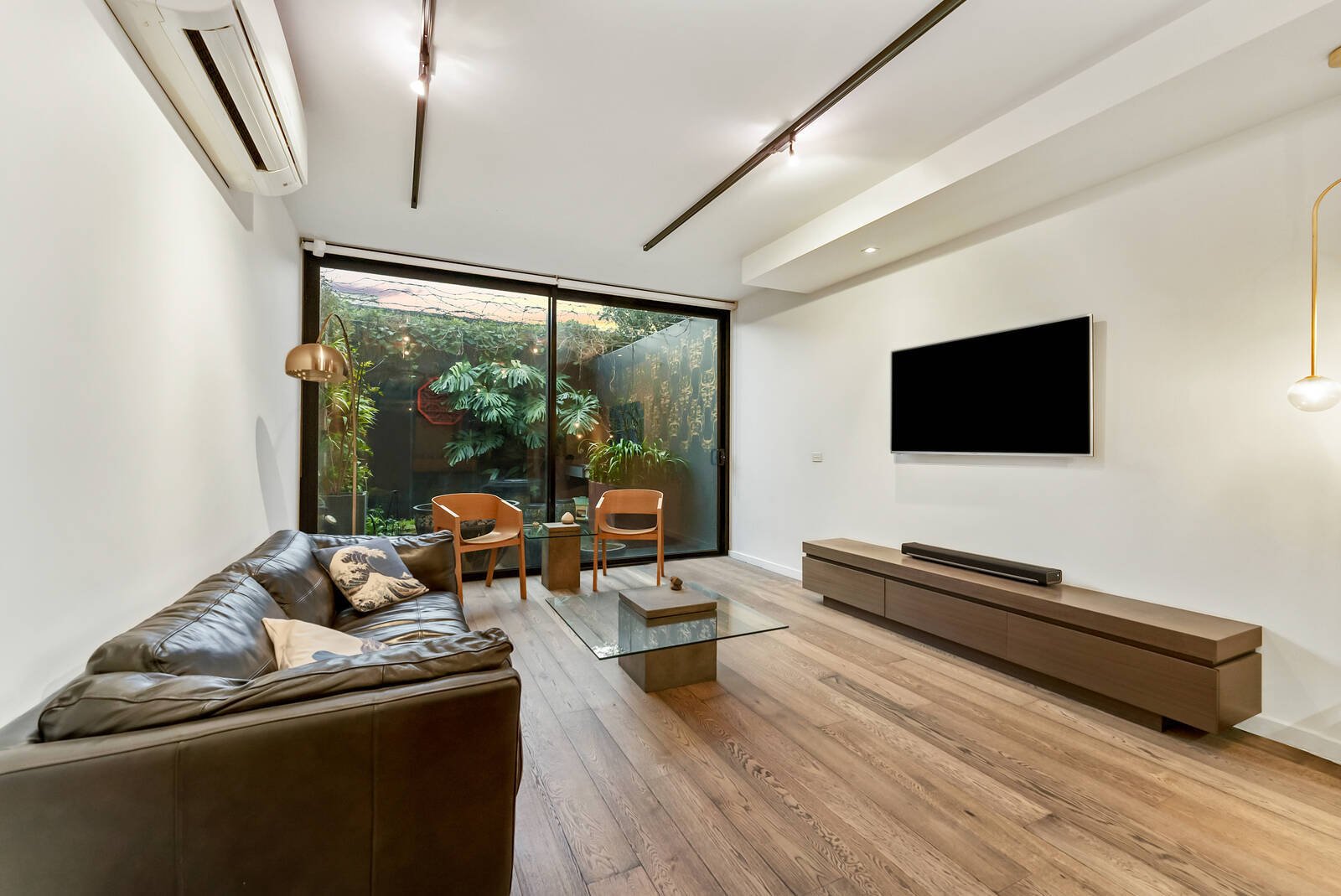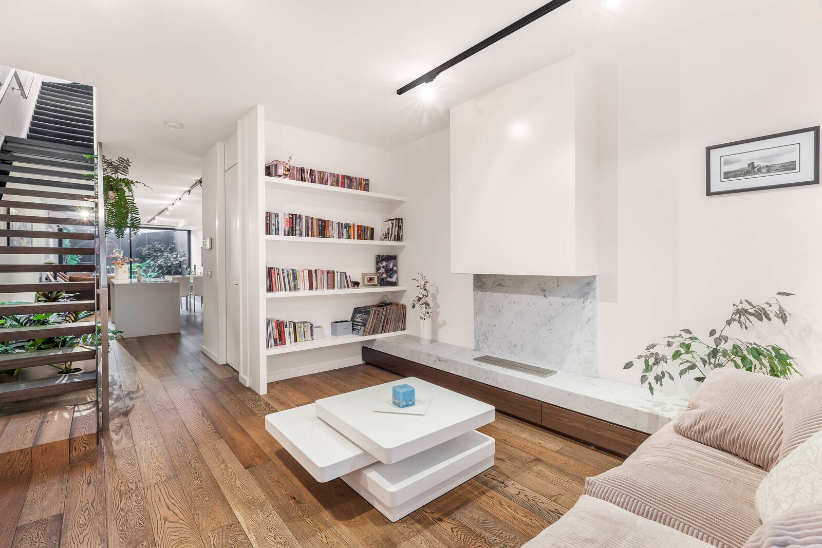 Designed by multi awarded ARM Architecture and finished by prominent interior designer Kate Walker, superbly sophisticated interiors include two separate living areas, one with gas fire and built in storage, the other a generous open plan living/dining domain with showpiece Miele kitchen (induction cooktop) and alfresco courtyard, a whole floor main bedroom retreat featuring WIR, BIRs, sumptuous ensuite and balcony and two top floor bedrooms, each with BIRs and ensuites, one with balcony.