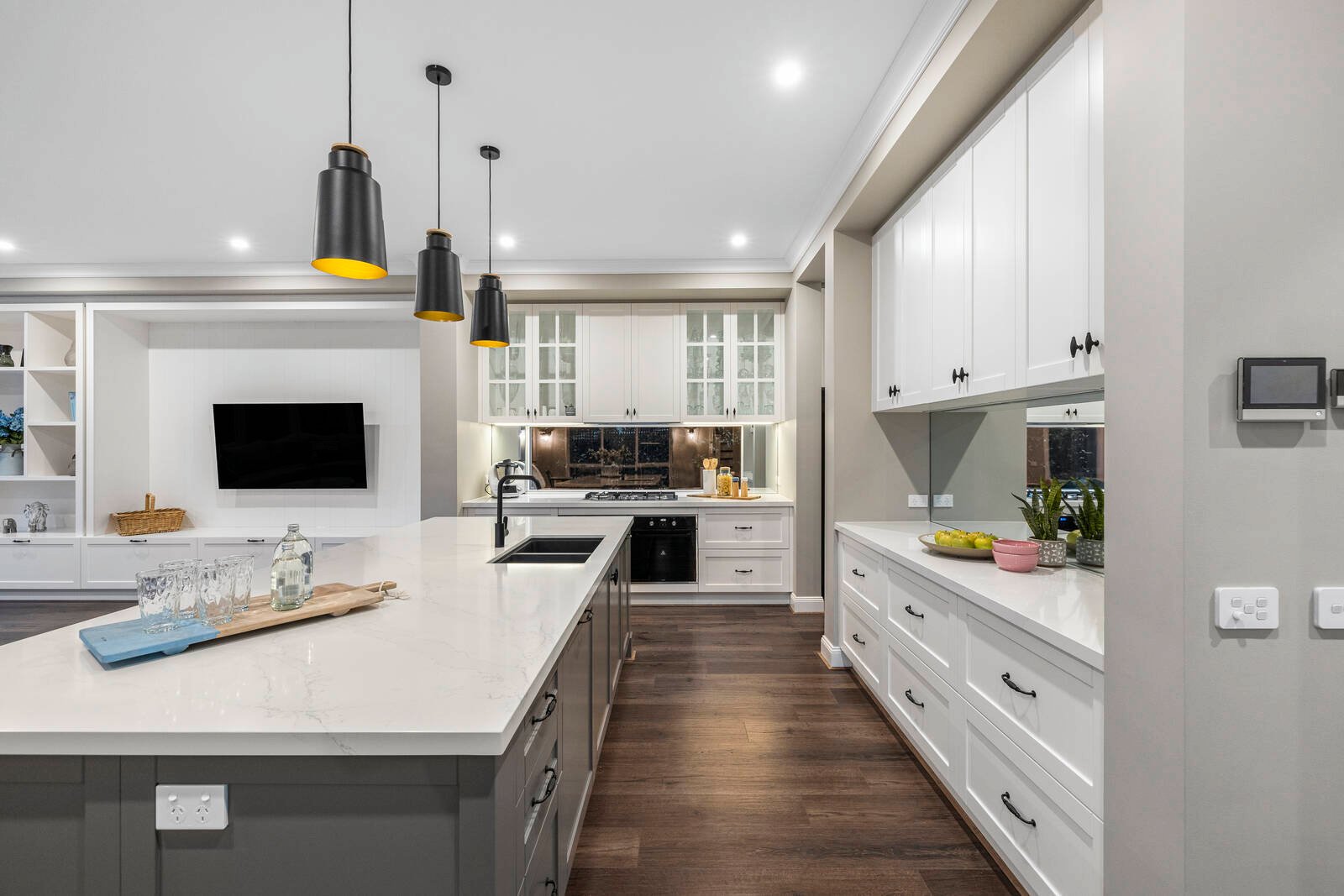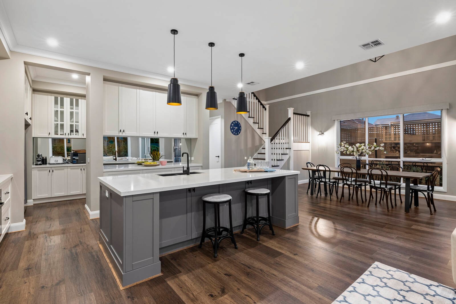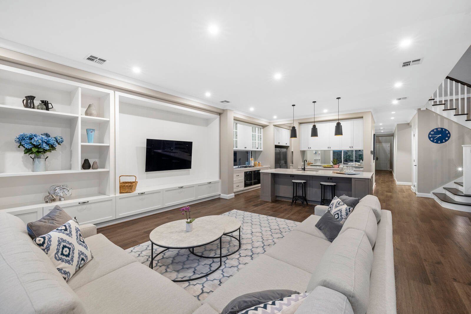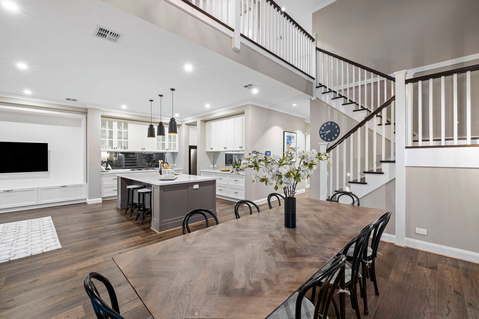 Find timeless beauty and lifetime family accommodation in this breathtaking up-to-the minute home. Custom-built to fit the biggest, blended or extended family with rare grace and grandeur, this 42sq Hamptons-inspired home meets the demands of family life with a six bedroom, 3.5 bathroom, multi-workspace design. Graced with vast living zones upstairs and down, a domain of rare parental privacy on the ground floor, and queen-sized bedrooms (two with ensuite-access) in dedicated first-floor kids’ quarters, this is a home of uncompromising quality and unparalleled beauty.