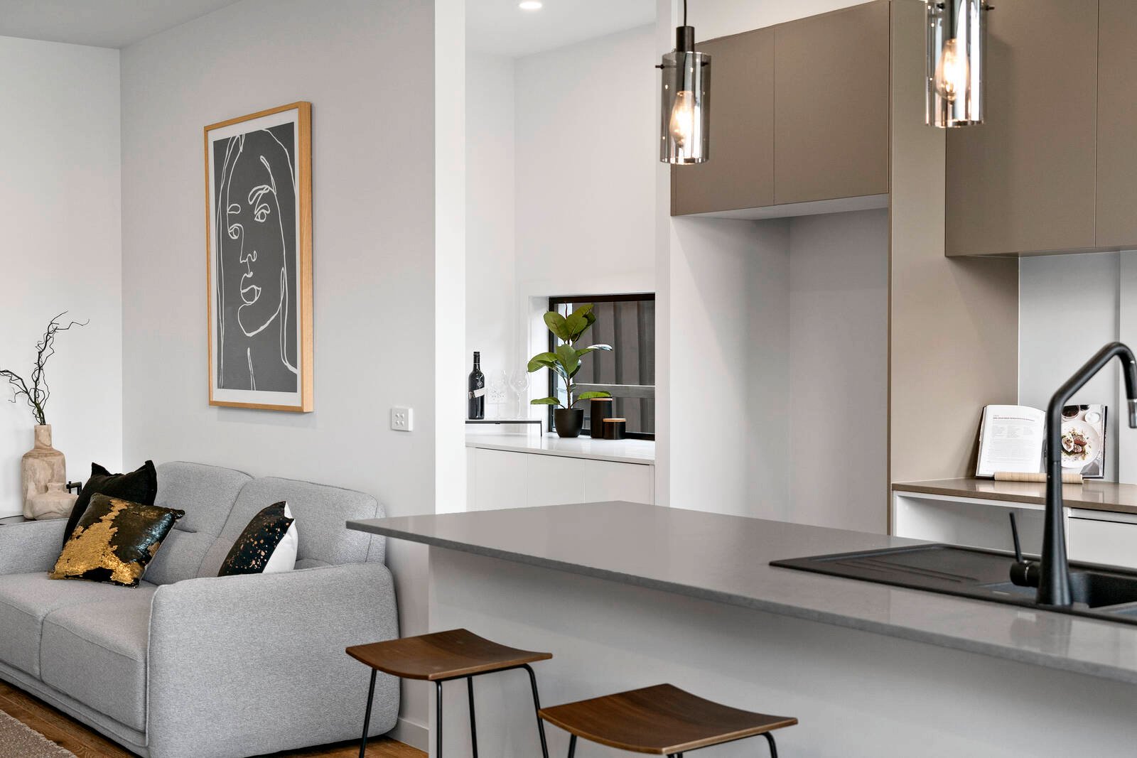 With the option of master-bedroom upstairs or down this home will appeal to all. The well thought out floorplan cleverly positions living zones at the front and rear of the home separated by a state-of-the-art kitchen complete with breakfast bar, servery and butler’s pantry.