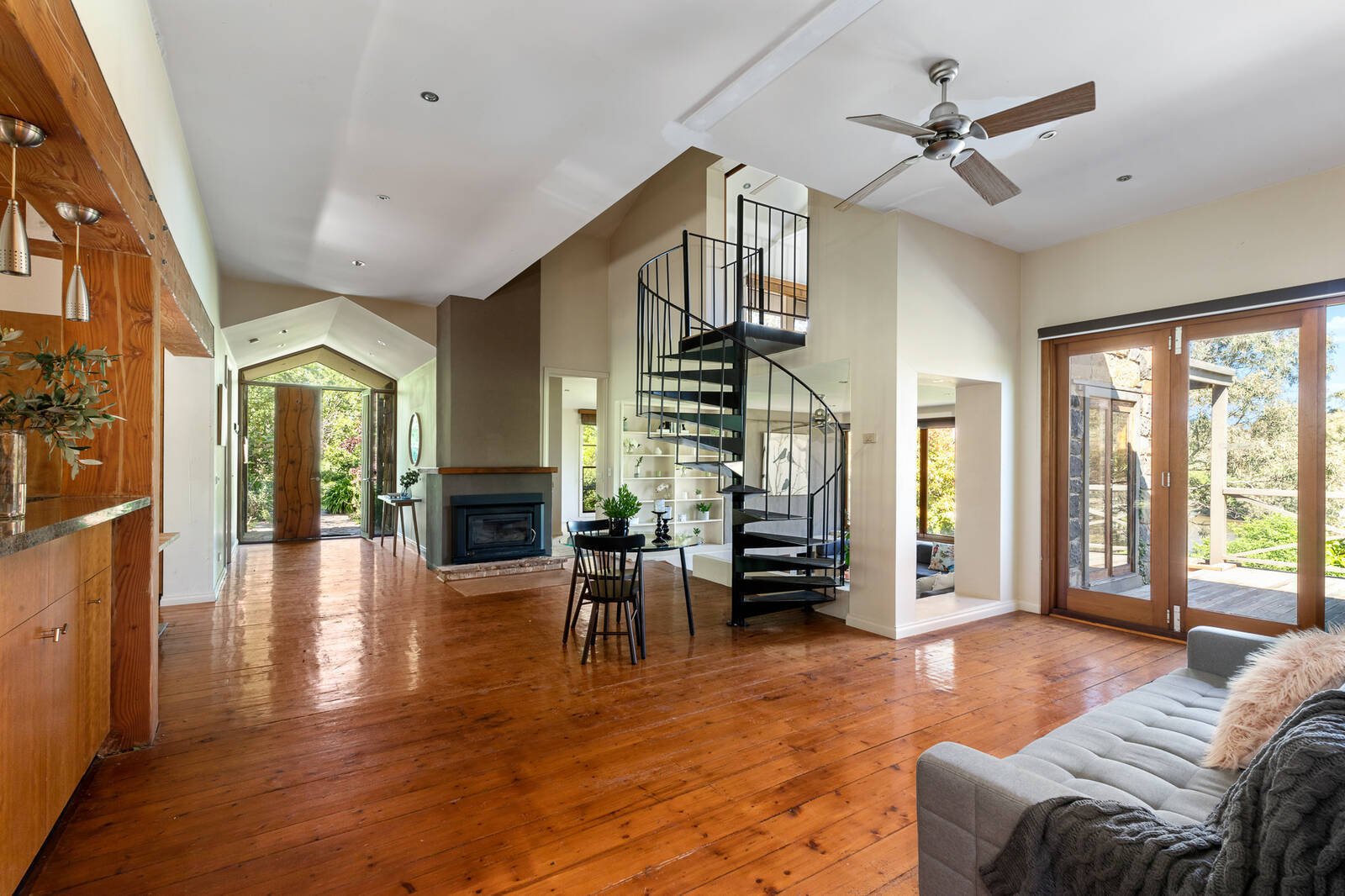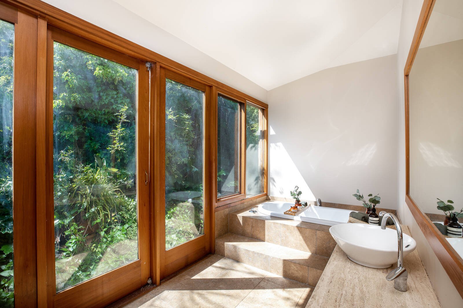 There are three generously sized bedrooms, the well-appointed master bedroom has its own dressing room and ensuite, the sliding doors open out on to the deck on to the private outdoor spa, the second bedroom has a built-in robe and a luxurious bathroom with calming views, a spiral staircase leads up to the third bedroom which has a built-in robe taking in the vista.
