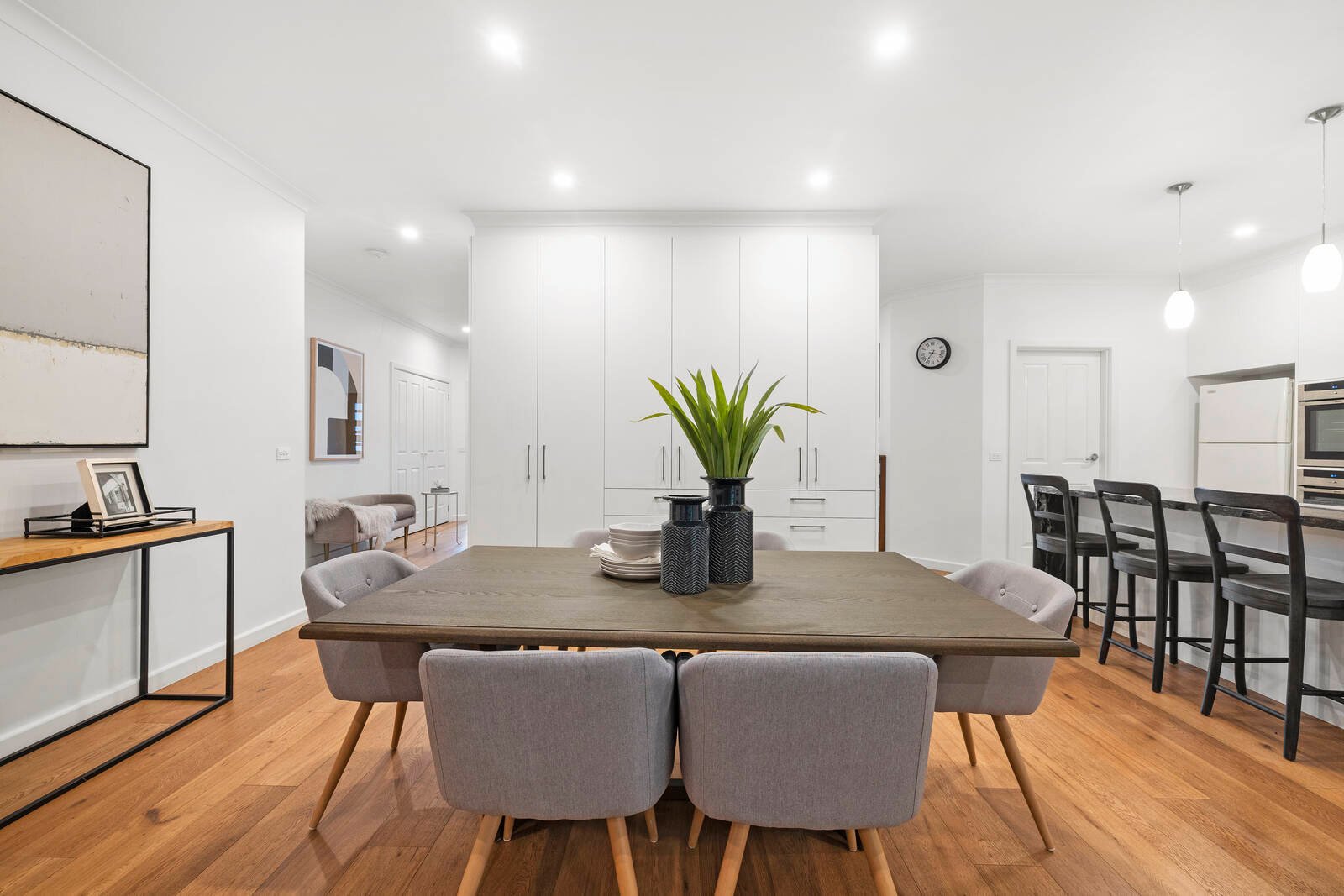 Styled to luxury standards with a glossy granite kitchen with prestige German Neff appliances, a fully-tiled stone-finished ensuite, and a main spa-bathroom, this well-appointed home offers well-fitted walk-in and built-in robes, wideboard oak floors and a wall of family-room cabinetry to fit the biggest family clutter. Even the extras go above and beyond with elite hydronic heating plus reverse-cycle air-conditioning, high-capacity solar panels, and a through-access double auto-garage.