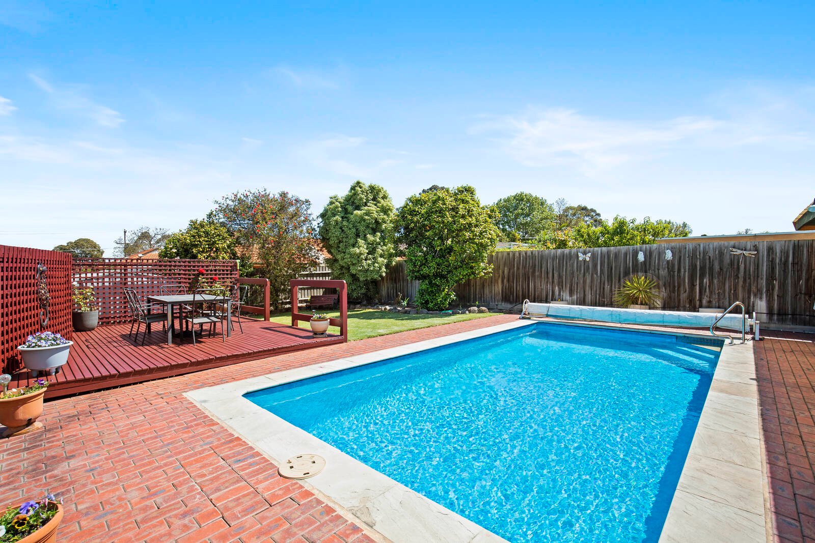 Dive in, splash out, let us entertain you! With a pub-quality bar overlooking an inviting formal zone, and a slick stone and Bosch appliance kitchen wrapped by separate family living and dining rooms, this three bedroom, two bathroom home is an outstanding entertainer. There’s even more outdoors with an all-weather undercover area for year-round BBQs, an elevated sun-deck for summer fun, and a sparkling deep-blue pool to splash-out!