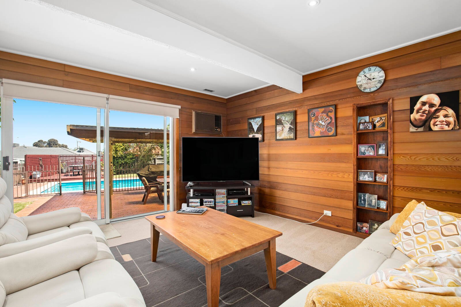 Shining with family-wise living inside and out, this stylish mid-Century home is optioned up for today with an open-fireplace to warm up a bar-side activities, air-conditioners to stay cool with a view to the pool, and ducted heating and ceiling fans extending the comfort throughout. Perfectly practical with robes for every bedroom, fitted cabinetry including a dining-room buffet, and a deep two-car carport with room for the bikes, boats and more, there’s all you need to kick-back, relax and start planning the party.