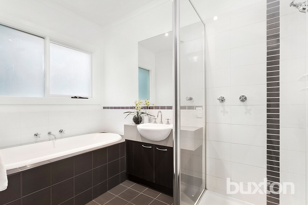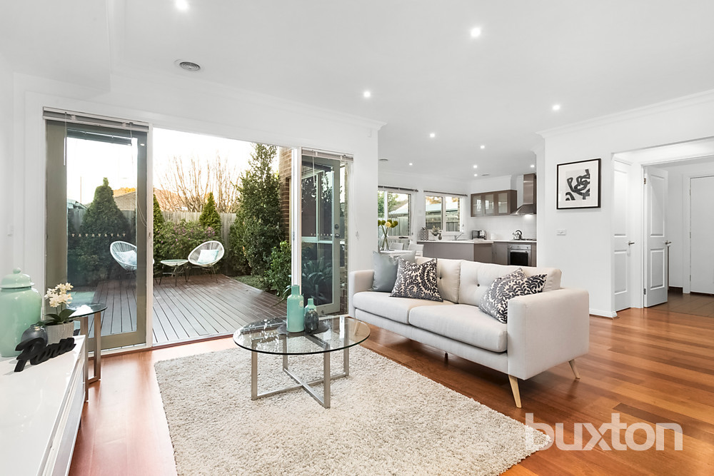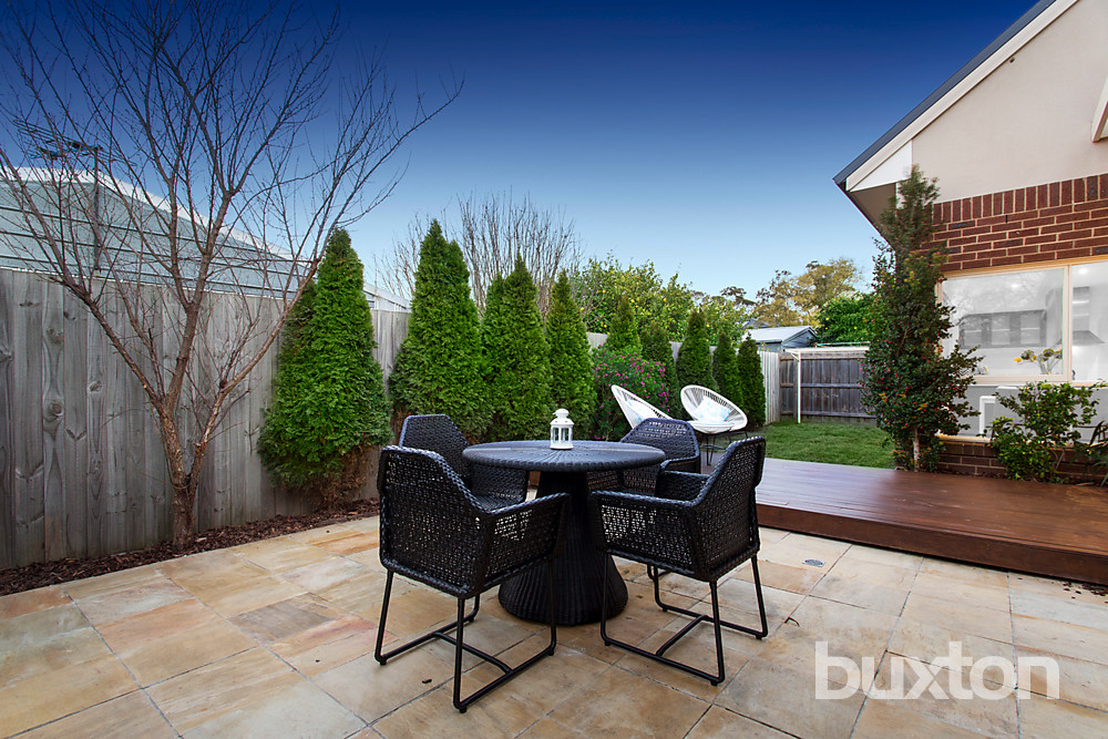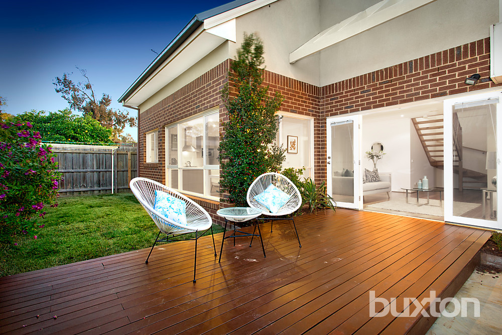 A fusion of style, space & quality, this impeccable 3BR/2 bathroom townhouse set privately to the rear offers contemporary family living in an enviable locale. Warm & welcoming from the outset, polished floors and high ceilings introduce a sun-washed interior featuring an expansive living, dining & modern kitchen flowing effortlessly to an oversized landscaped yard, deck and paved courtyard - an entertainer's delight. Skylights enhance immaculate upstairs robed bedrooms, whilst stylish tiling repeats through all wet areas, including a central bathroom with a separate bath & separate powder room. A secure double garage, gas ducted heating & A/C are additional highlights.